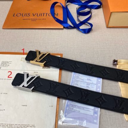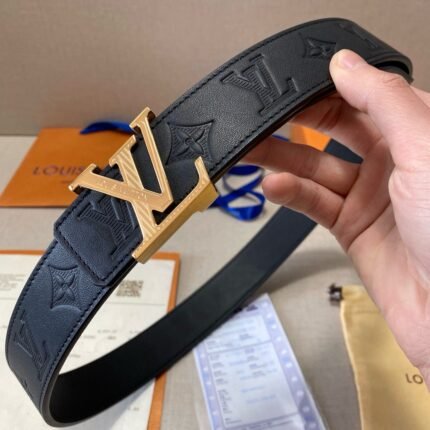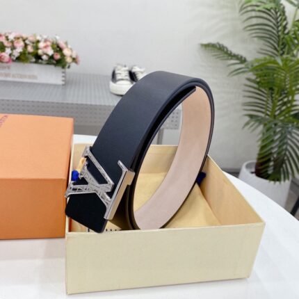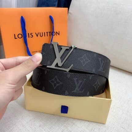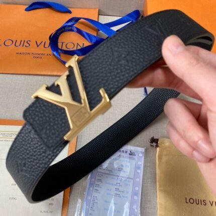 Louis Vuitton V-shaped buckle black textured belt, simple and elegant, low-key luxury