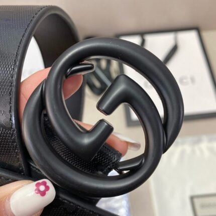 Gucci double G buckle black textured belt, simple and elegant, low-key luxury
