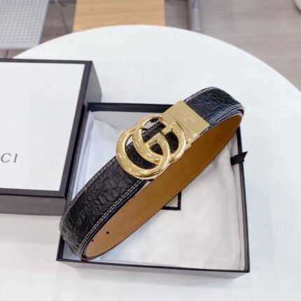 Gucci double G buckle crocodile pattern black belt, simple and elegant, noble and elegant