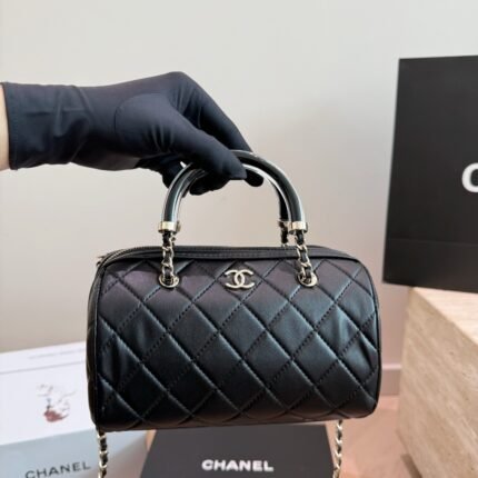 Chanel Chevron V-Quilted Top Handle Long Box Bag | Black/Gold & Metallic Chain Crossbody Bag (Multi-Color Available)
