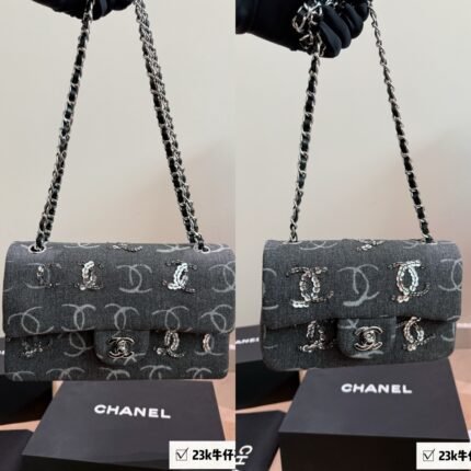 Chanel 23K Denim Sequin CF Bag | Classic Quilted Chain Crossbody Bag (Available in 2 Sizes)