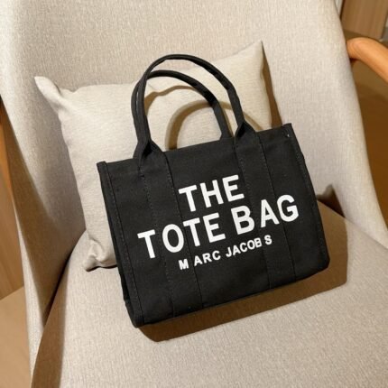 This Marc Jacobs The Tote Bag collection features the brand’s bold “THE TOTE BAG” branding, crafted from durable fabrics like