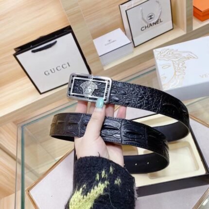 Versace Classic Square Buckle Black Crocodile Pattern Belt Simple, Grand, Noble, and Elegant