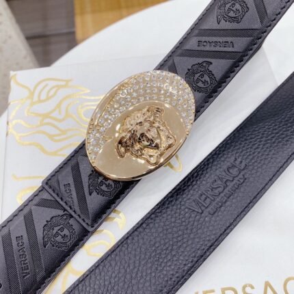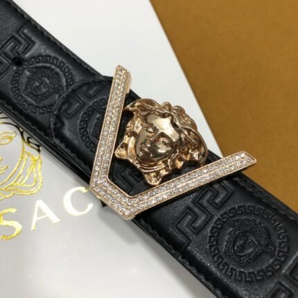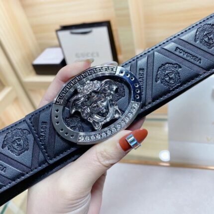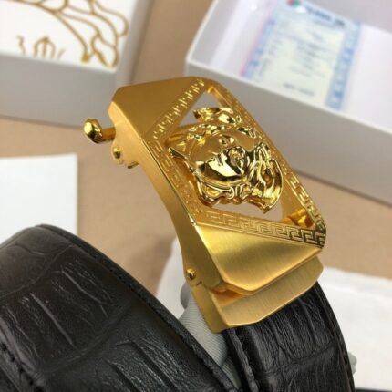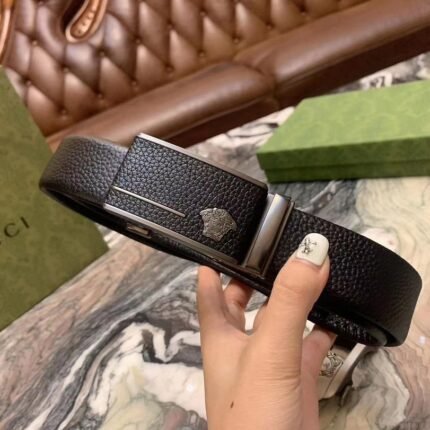 Versace Classic Medusa Relief Buckle Black Texture Belt Simple, Grand, Noble, Elegant
