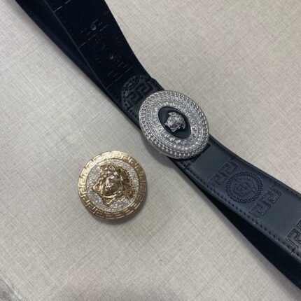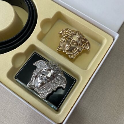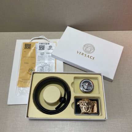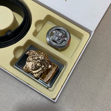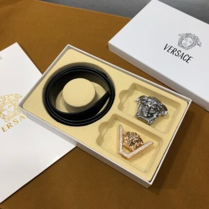 Versace Classic Double Button Round Buckle Belt Gift Box Set, High end Fashion, Noble and Elegant