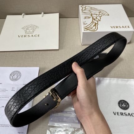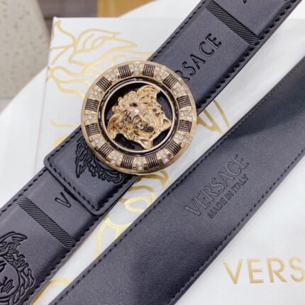 Versace Classic Circular Buckle Black Texture Belt Simple, Grand, Noble, and Elegant