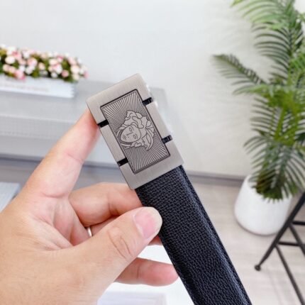 Versace Silver Square Buckle Black Belt Simple, Grand, Noble, Elegant