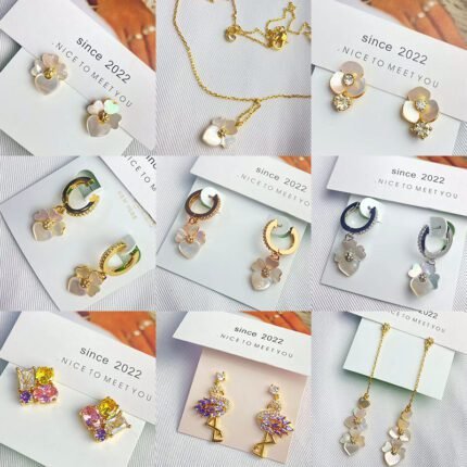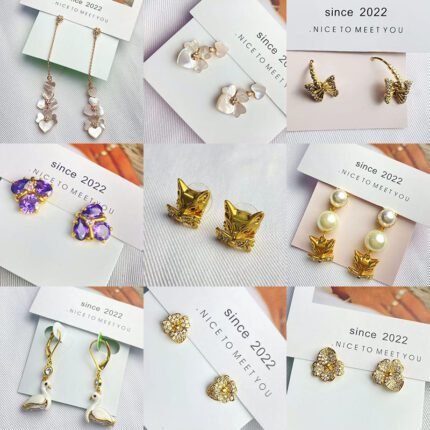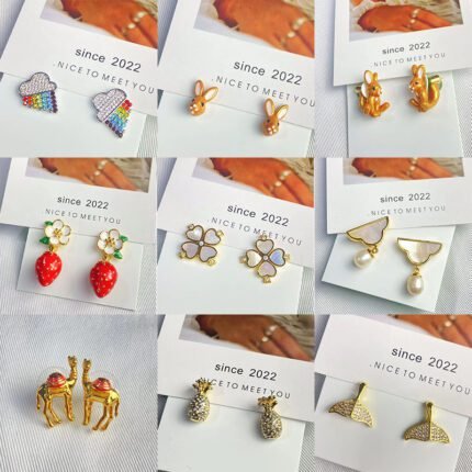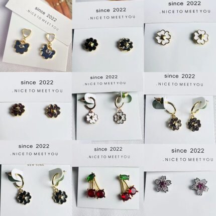 Multi style color flower earrings, zircon cherry earrings, zircon flower earrings