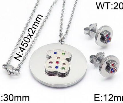 TOUS Stainless and A round bear colorful zircon inlaid necklace earrings