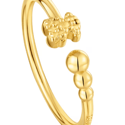 TOUS stainless steel round ball and bear gold open ring