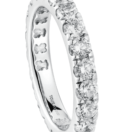 TOUS Stainless Steel Full Transparent Zircon Engraved Bear Round Ring