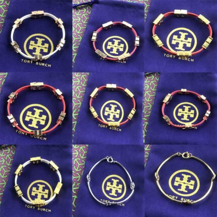 Multi colored perforated leather double T bracelet, simple thin ring combination double T bracelet
