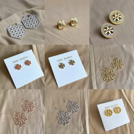 Tri color twisted ring double T earrings, blue round zircon tassel gold double T earrings