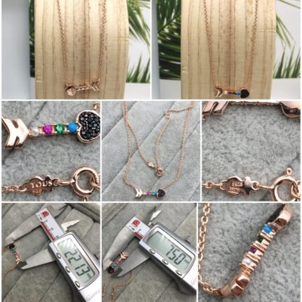 San Valentín arrow Necklace in Rose Silver Vermeil with Gemstones
