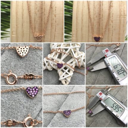 TOUS San Valentín heart Necklace in rose silver vermeil with rubies. Heart size: 0.6 cm. Length: 45 cm. Vermeil is