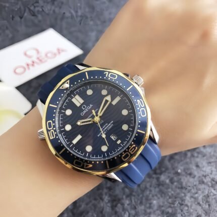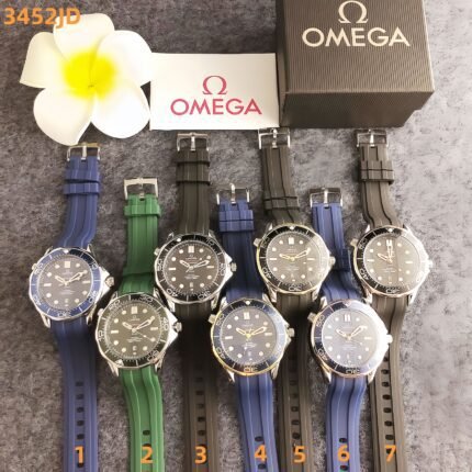 Omega 3452W series watches embody timeless dive-watch heritage with modern sophistication, featuring distinctive circular dials, sleek mesh metal bracelets, and