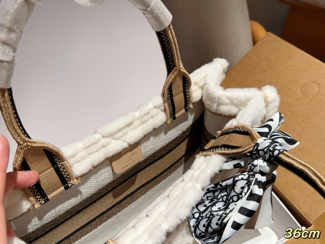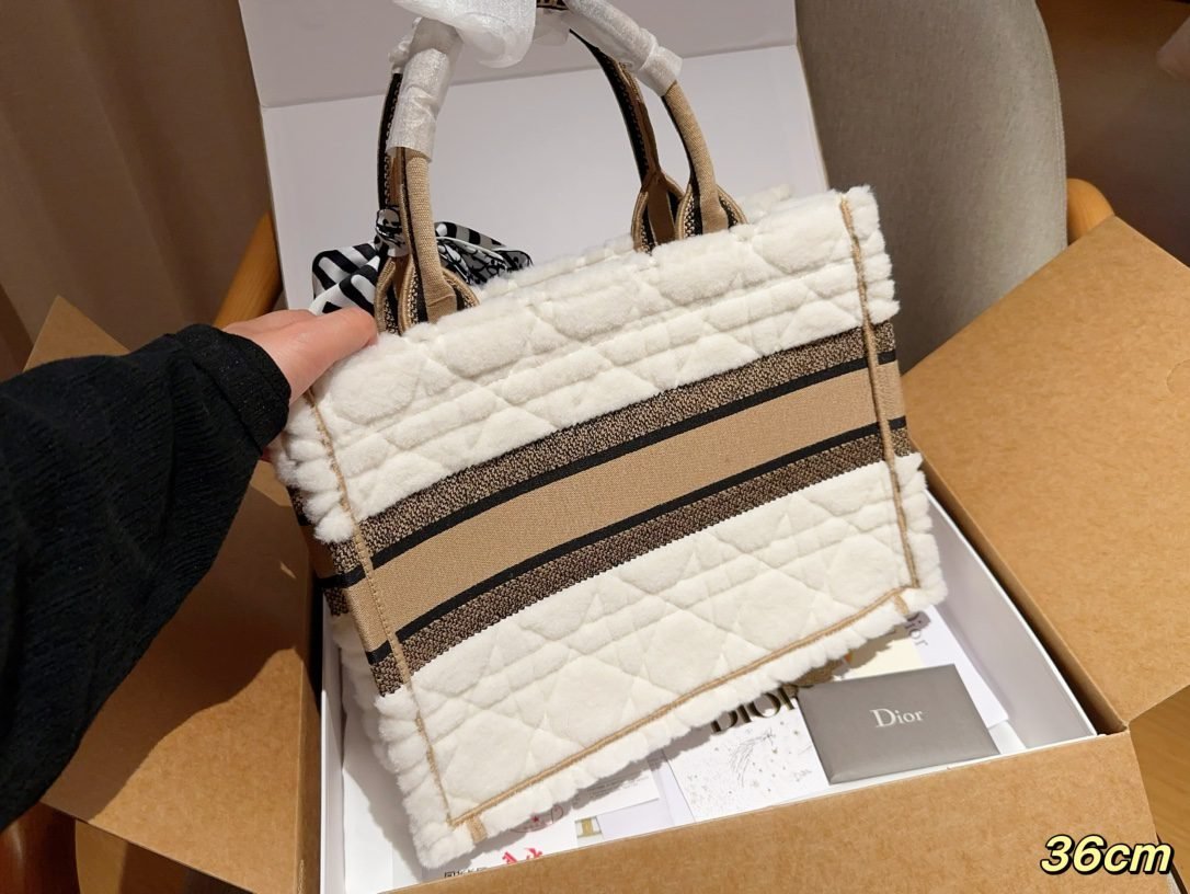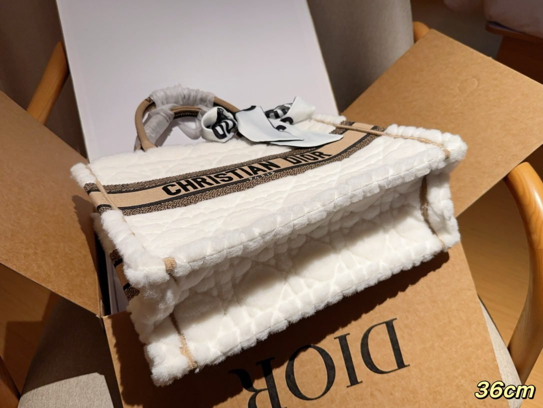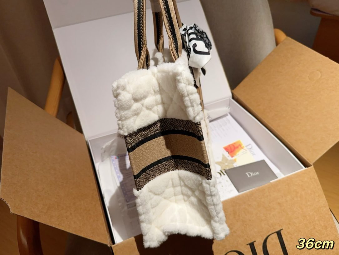Home BAGS DIOR-BAG A white tote bag with lamb fur and rattan grid, which I have come to know.SIZE:36cm