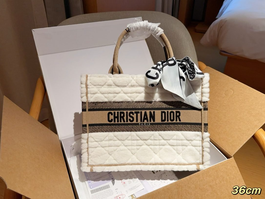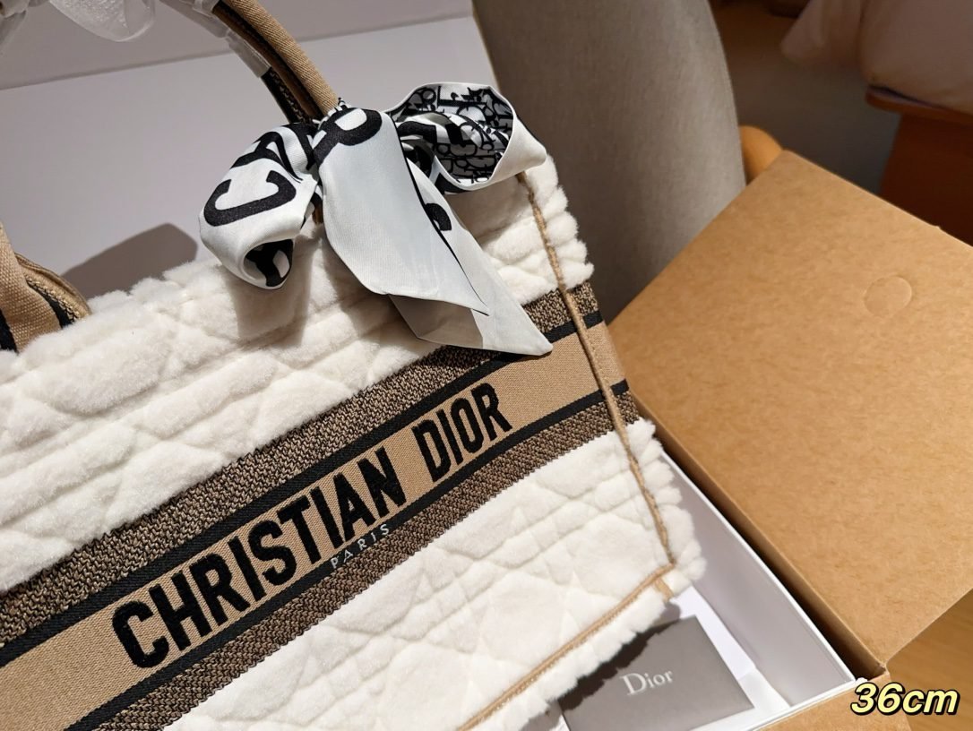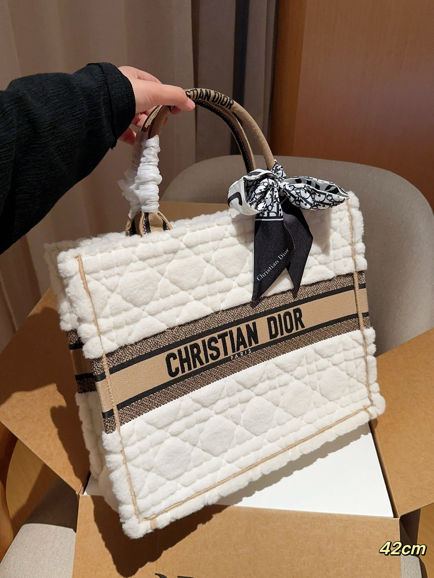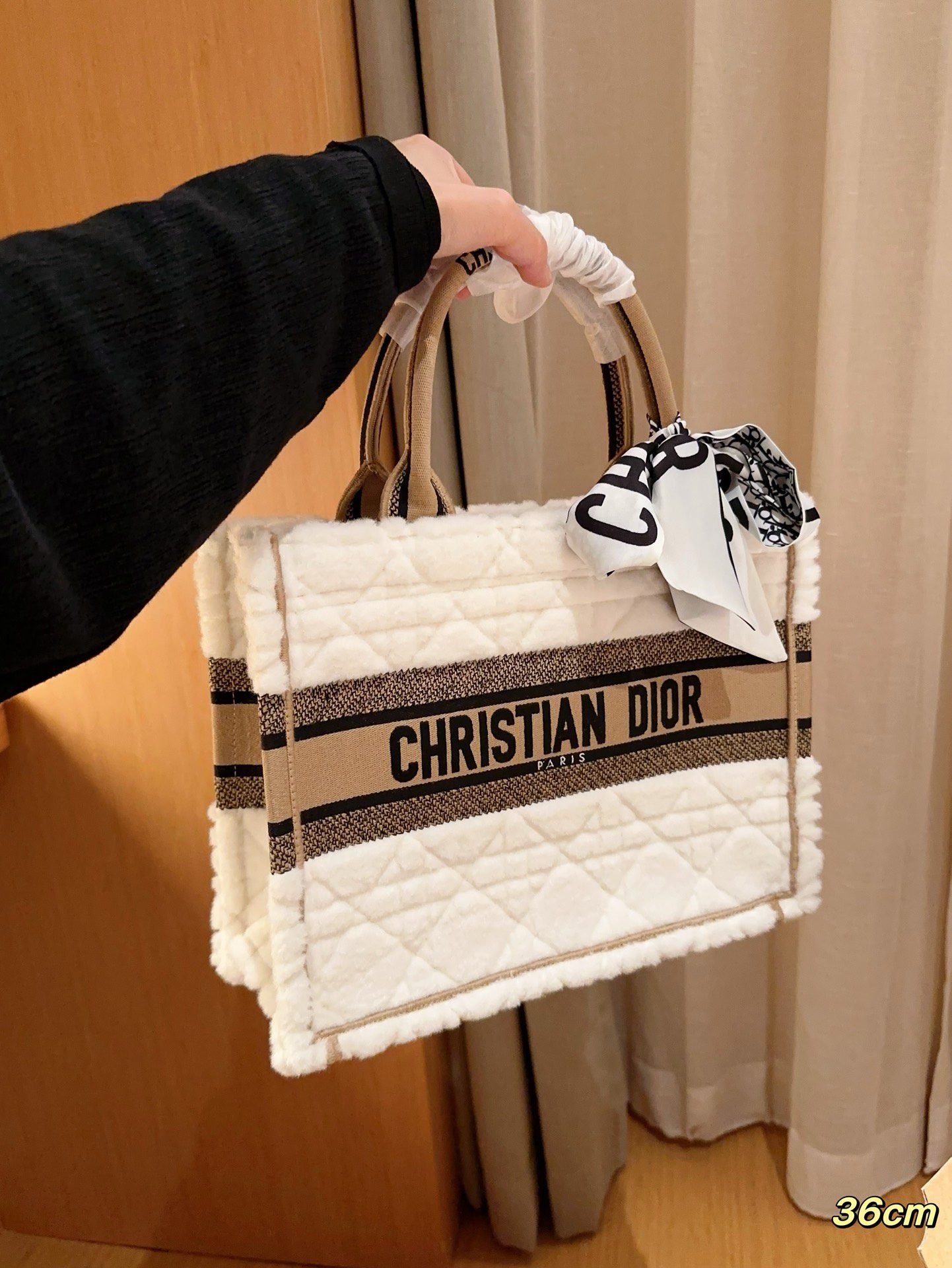 Home BAGS DIOR-BAG A white tote bag with lamb fur and rattan grid, which I have come to know.SIZE:36cm