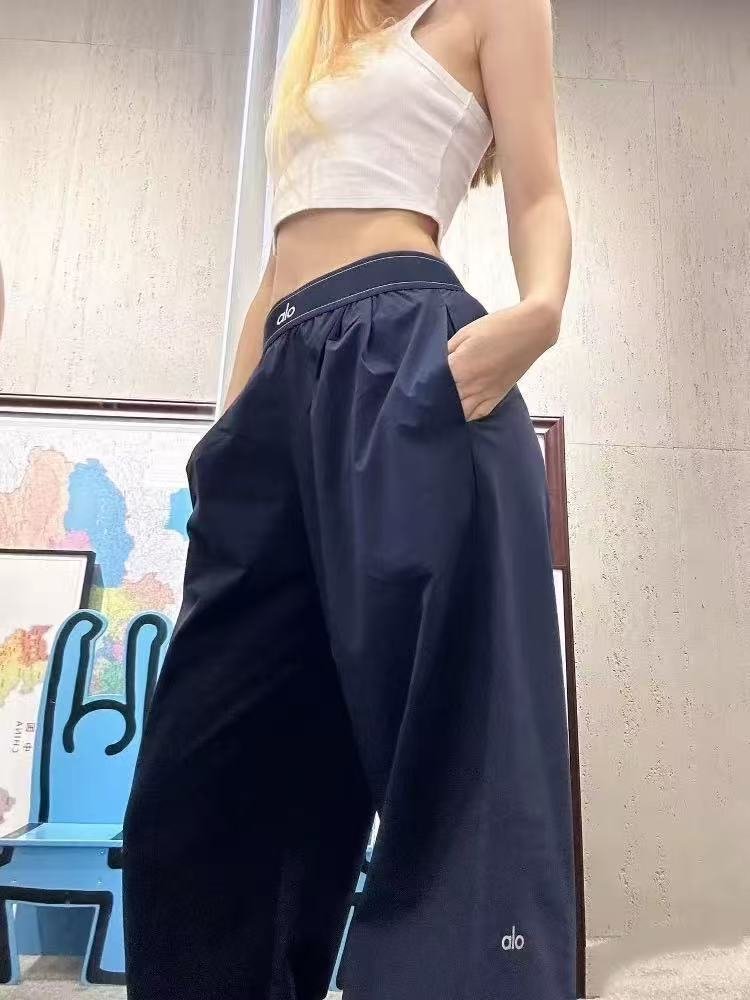 - Design: High-waisted elastic waistband for a snug, non-restrictive fit; wide-leg cut to flatter and elongate the legs; minimalist brand logo for understated luxury.