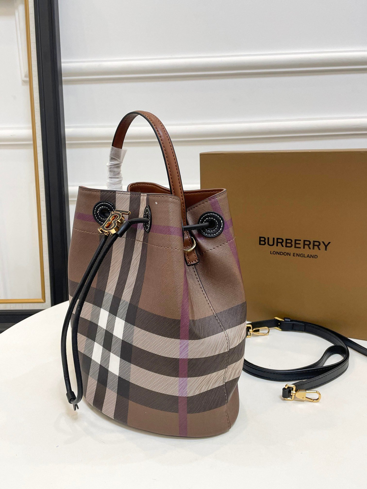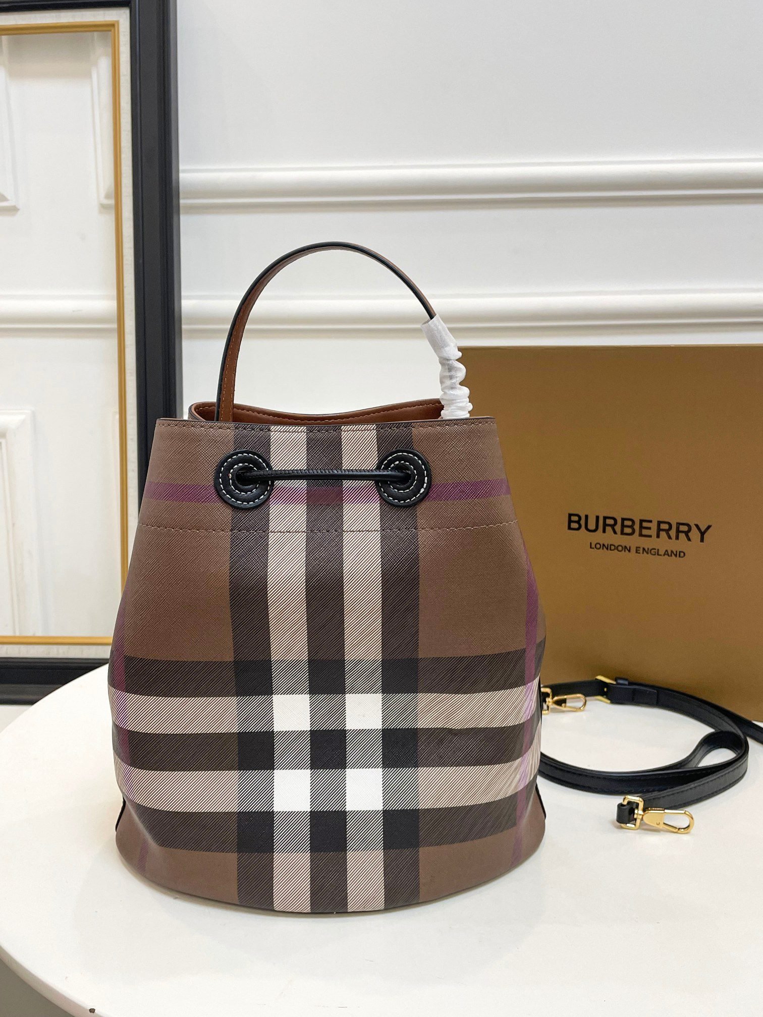 Burberry bucket bag fashion circle essentials Get up the new Burberry never worry about sales temperament placed there [strong] good quality! be sure to do the best, 😍😍 the original hardware size 26.28