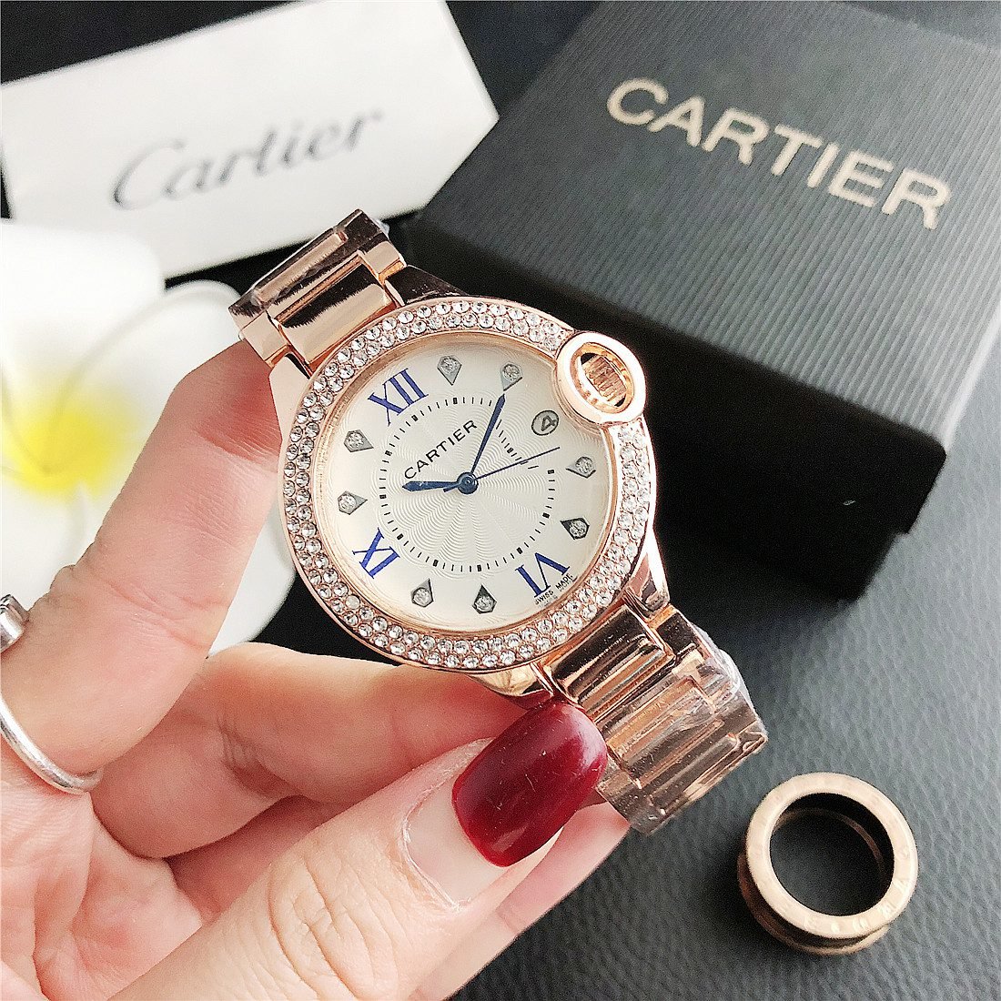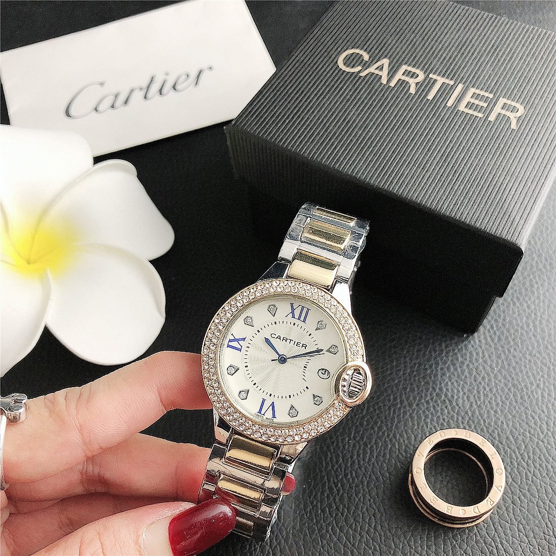 Material quality: Cartier watches use very sophisticated materials such as stainless steel, gold, platinum, etc., all of which have high quality and durability. The quality of the gold watch mirror and strap is also excellent, with good scratch resistance and wear resistance, which can maintain a novel luster for a long time.