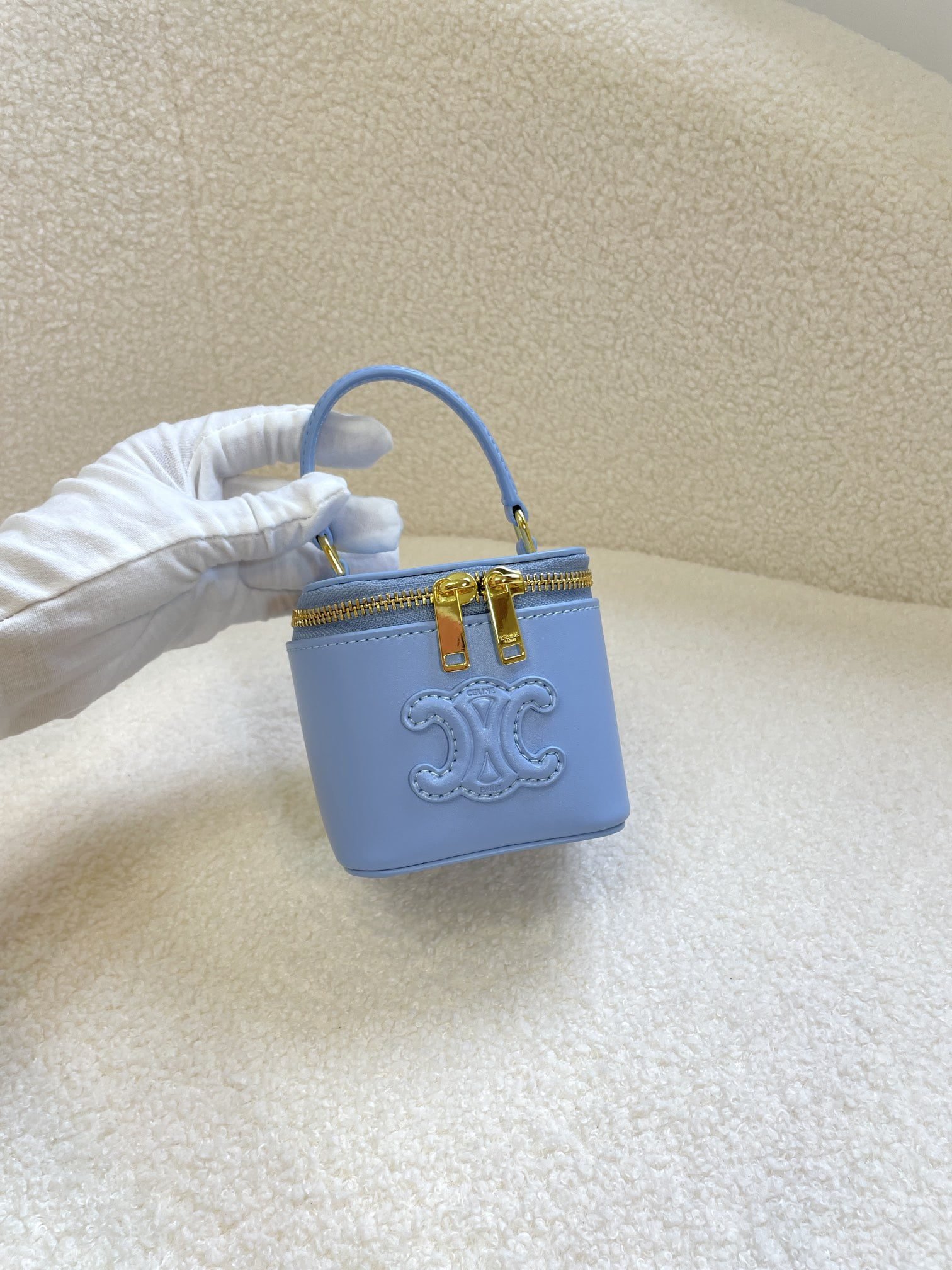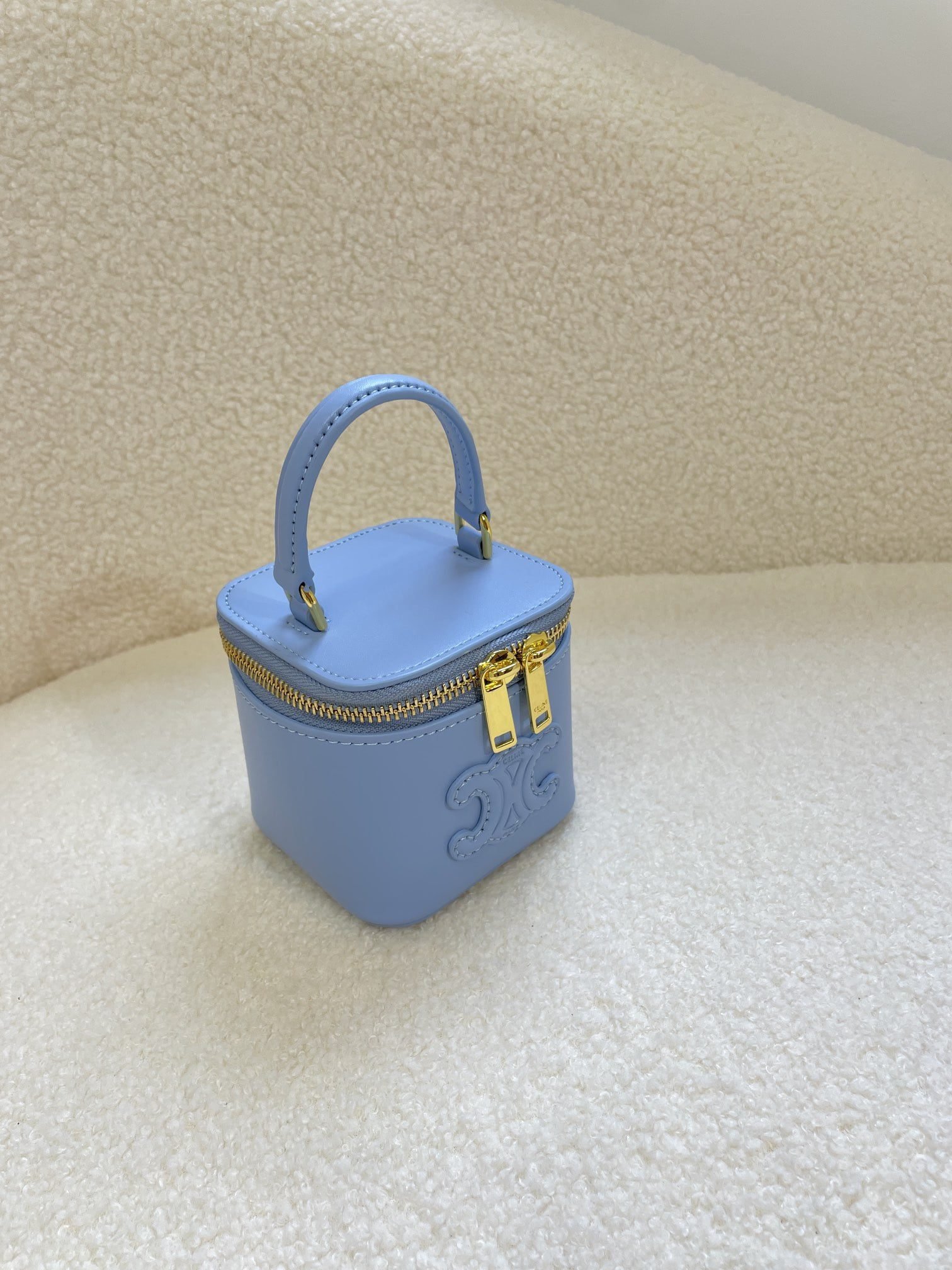 CELINE 23s Spring/Summer – Mini smooth leather makeup case Blue 8080 Size: 9.5* 8* 9cm