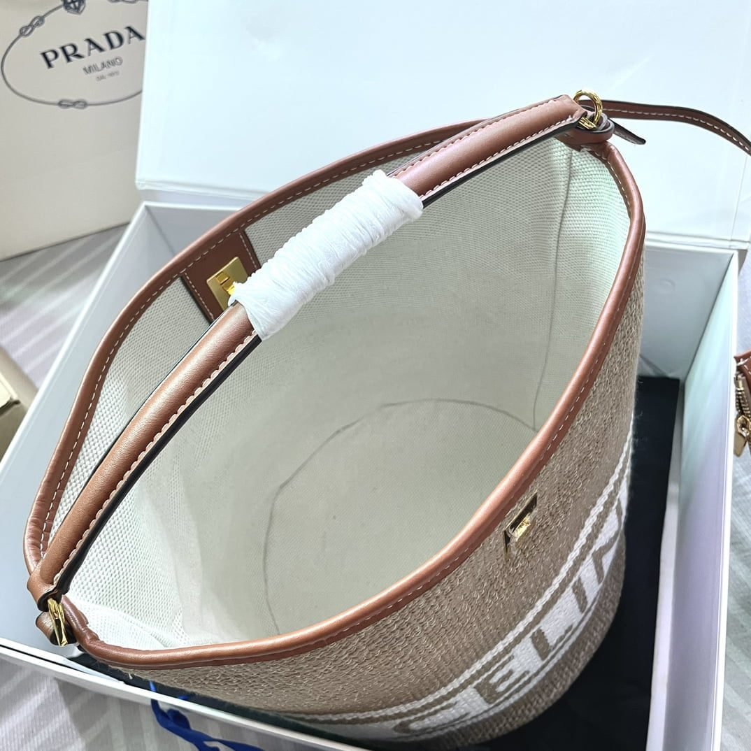 Mini jacquard stripe fabric cow leather bucket bag