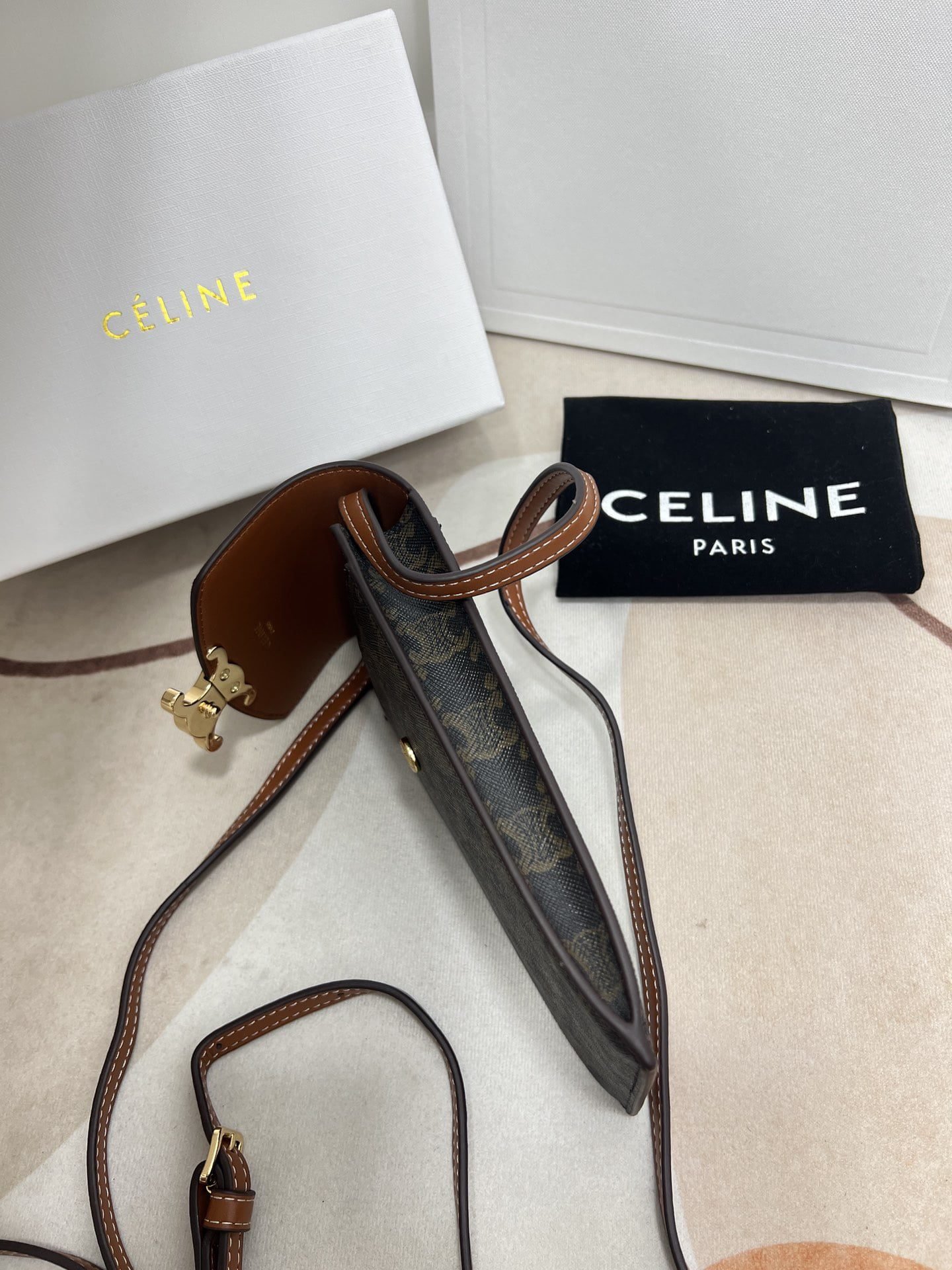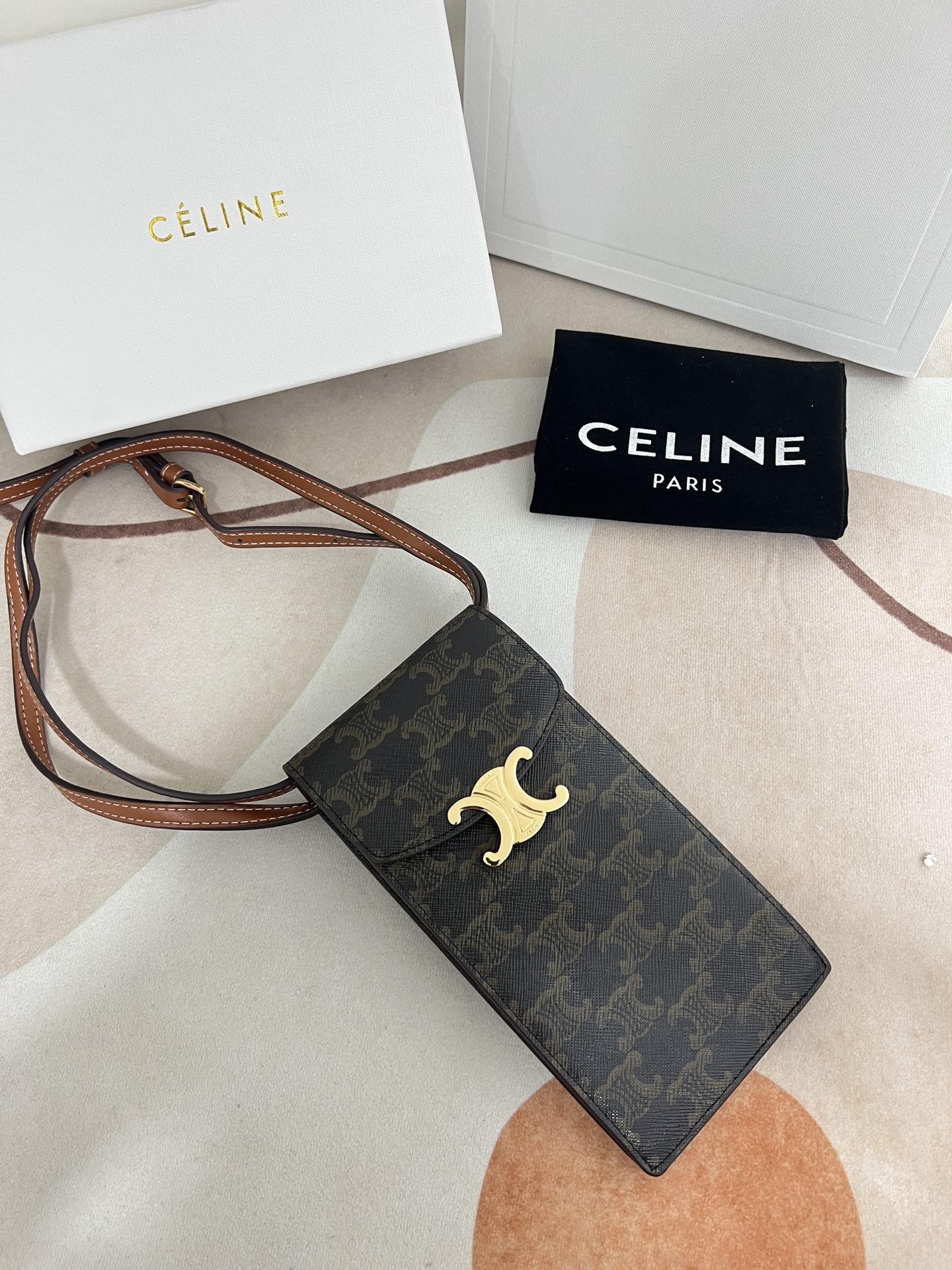 Arc de Triomphe mobile phone bag, classic presold fabric self weight is very light large Arc de Triomphe hardware logo embellishments, simple and unique C home wind
