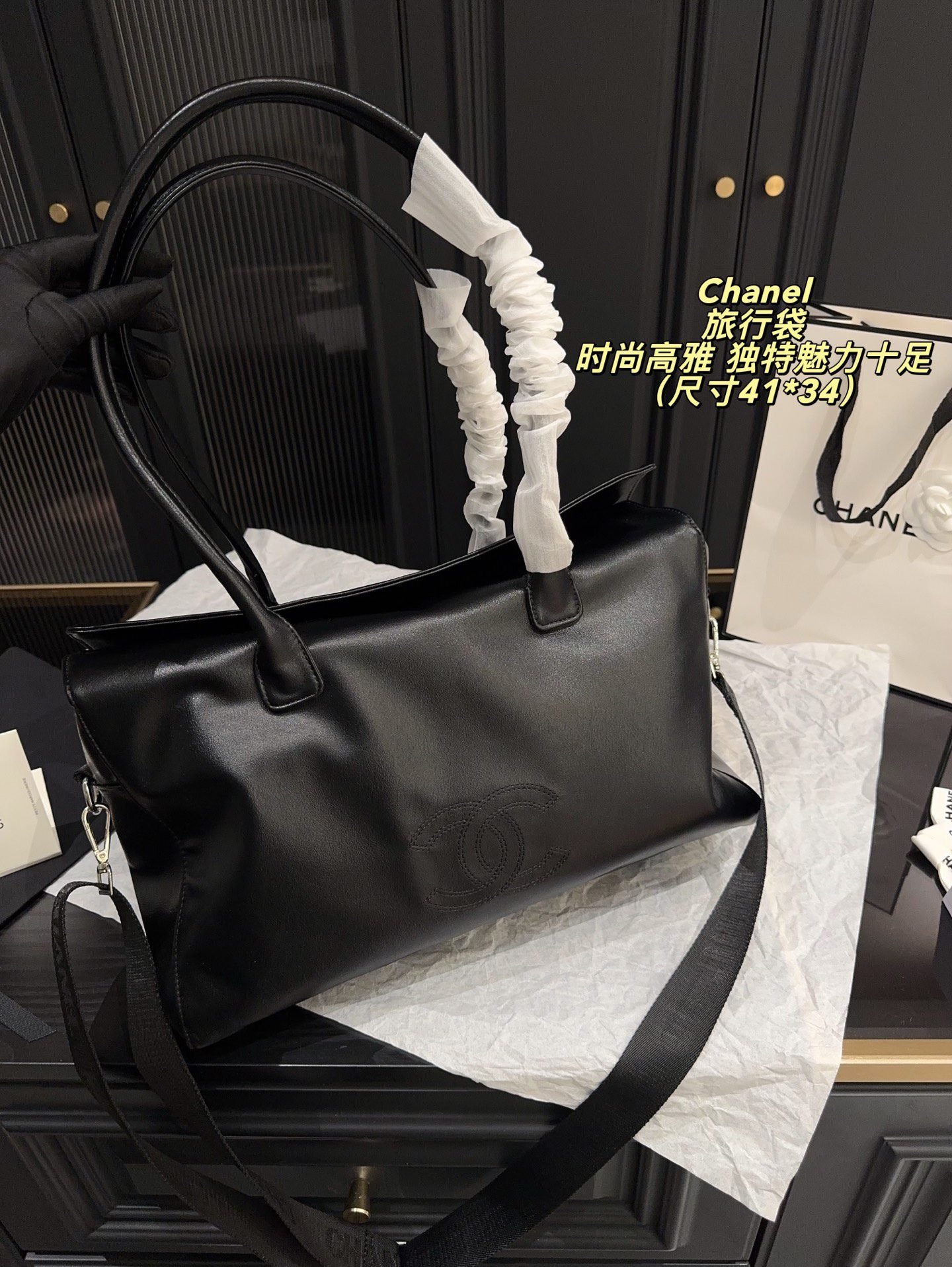 Be the first to review “Chanel Black Large-Capacity Travel Bag | Classic Embossed CC Top Handle & Crossbody Duffle Bag (41×34cm)” Cancel reply