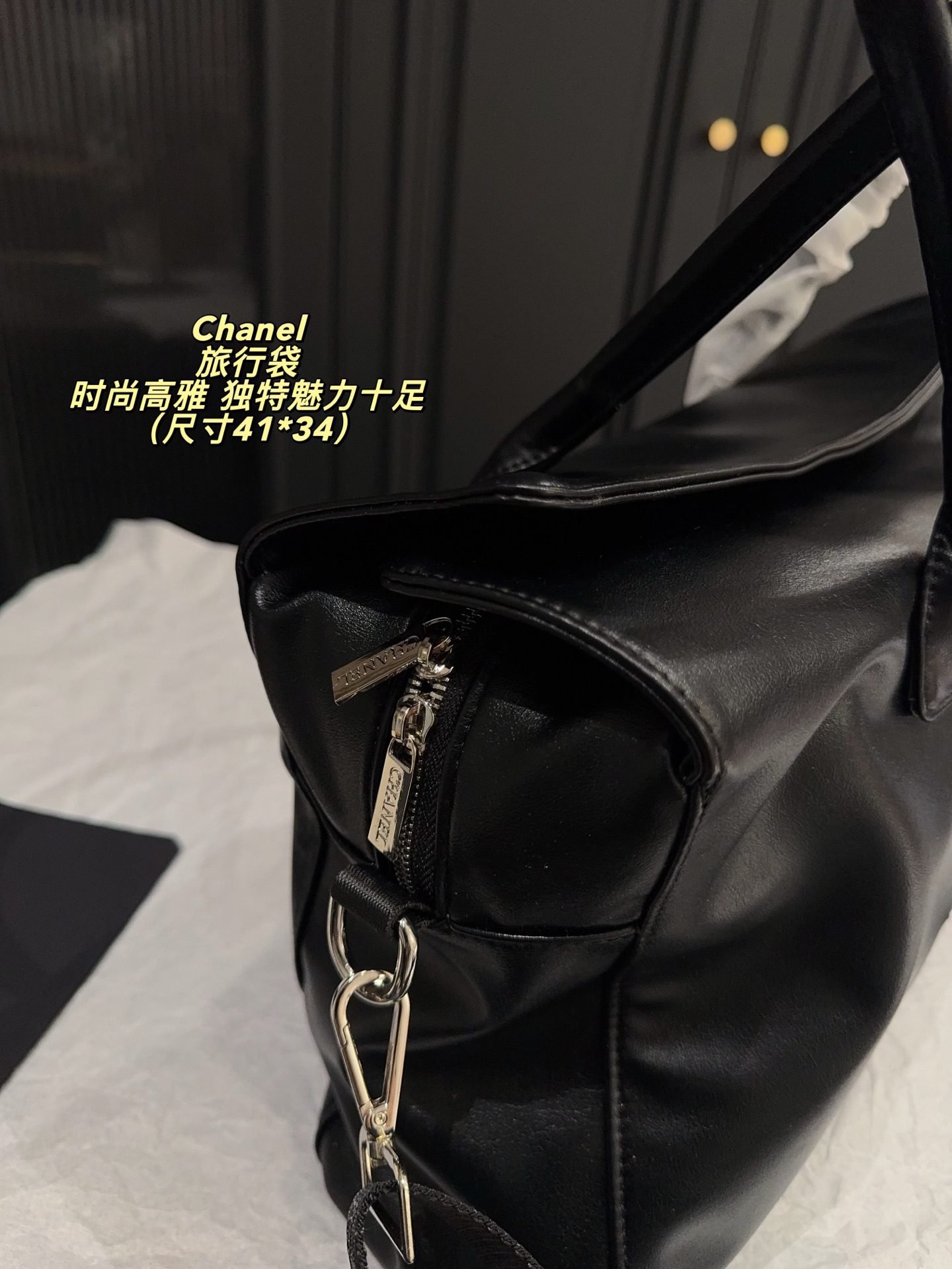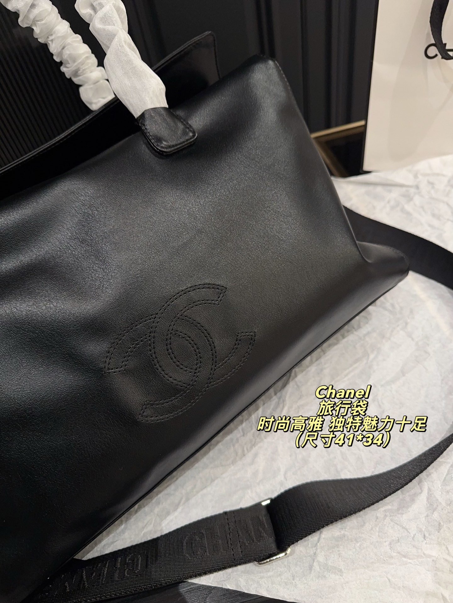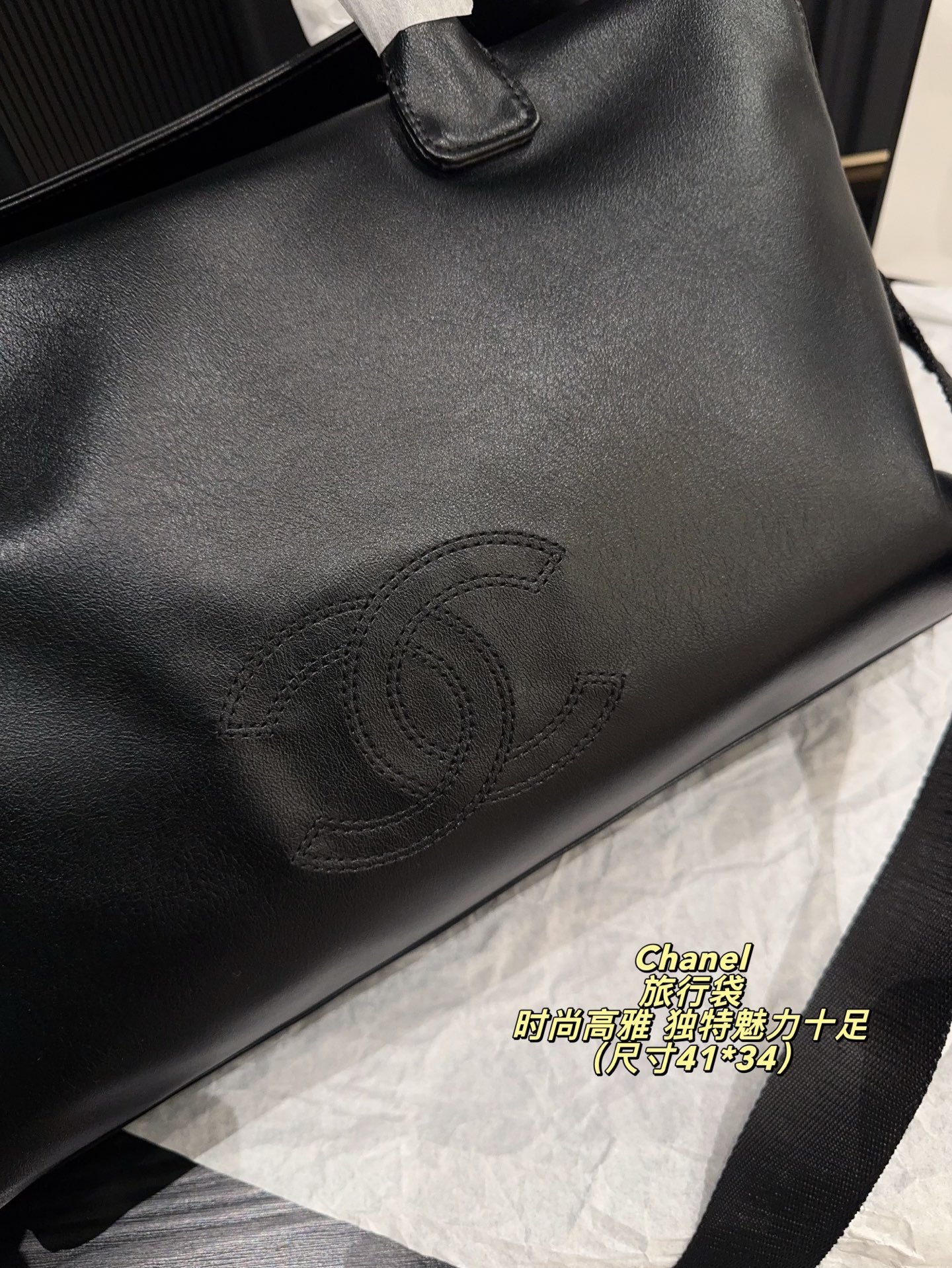 This Chanel large-capacity travel bag centers on a minimalist all-black design and the brand’s iconic embossed CC logo, blending luxury leather craftsmanship with practicality—making it the ultimate all-rounder for short trips, gym sessions, and daily commutes.