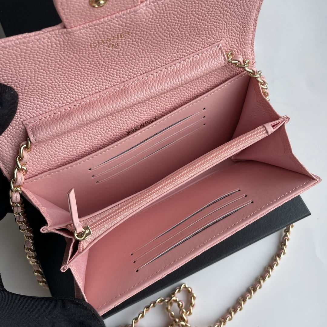 Home BAGS CHANEL-BAG Chanel chain crossbody bag Cowhide with diamond lattice caviar Pink A50076 size: 18*10.5*3.5cm