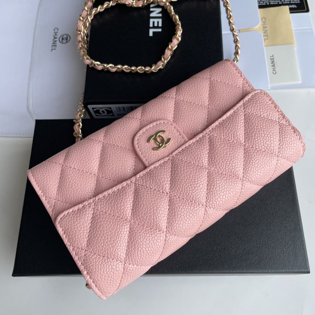 Chanel chain crossbody bag Cowhide with diamond lattice caviar Pink A50076 size: 18*10.5*3.5cm