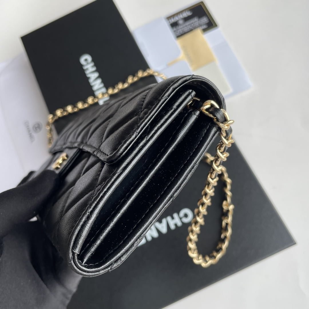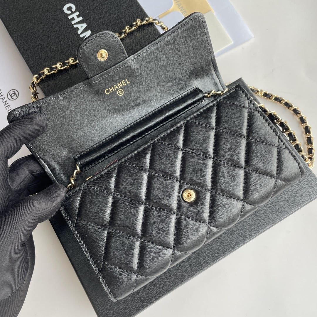 Chanel chain crossbody bag Cowhide with diamond lattice gold hardware black A50076 size: 18*10.5*3.5cm
