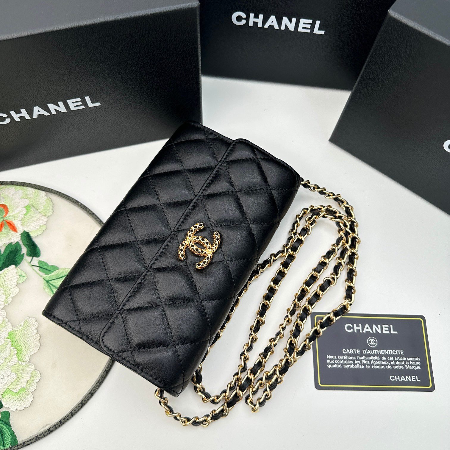 Home BAGS CHANEL-BAG Chanel Rhombus cowhide chain crossbody bag black 8001 size: 18*10.5*3.5 cm