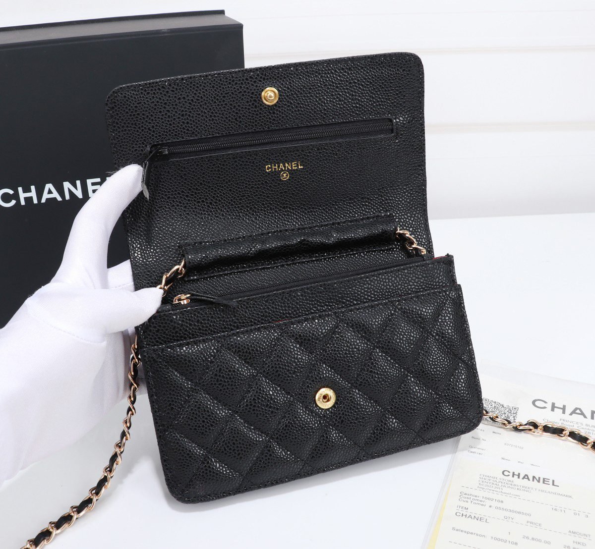 (33814 Caviar) Chanel woc Classic Purse 📢🔥 can be crossbody single shoulder, chain can be put into the bag as a clutch use 💪 on the back superatmosphere… Don’t look small, this can be loaded oh, bag inside the card, zipper, change, small and practical! European purchasing Yuan, size: W19*H12*D4