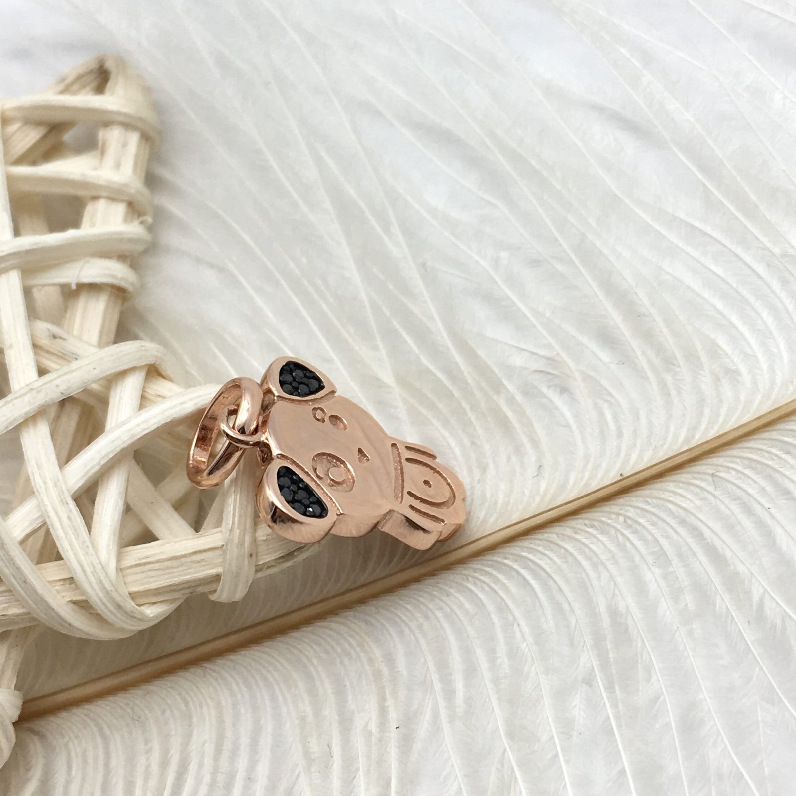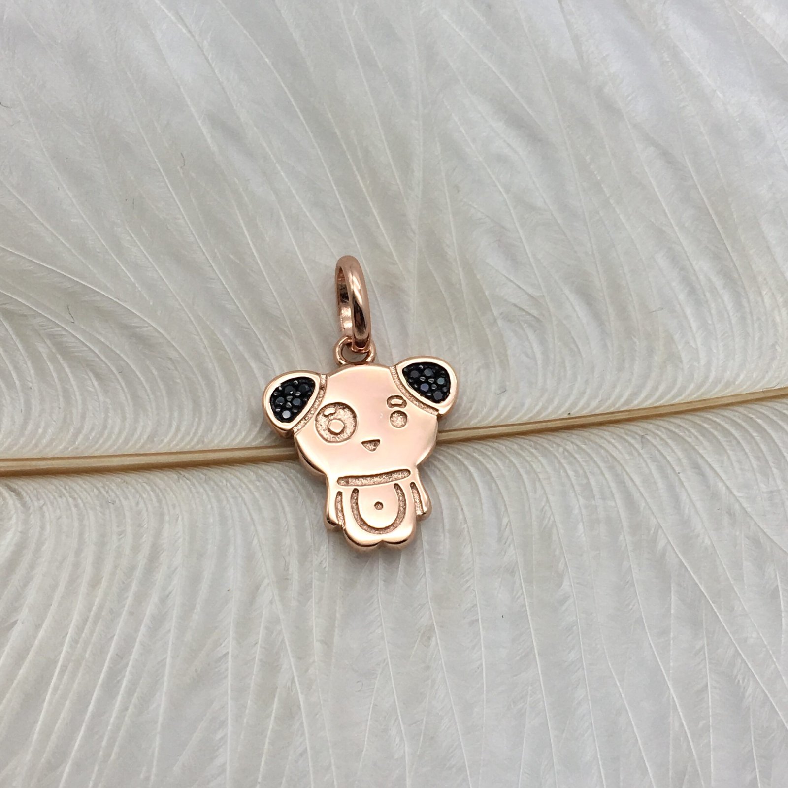 Chinese Horoscope Dog Pendant in Rose Silver Vermeil with Spinel