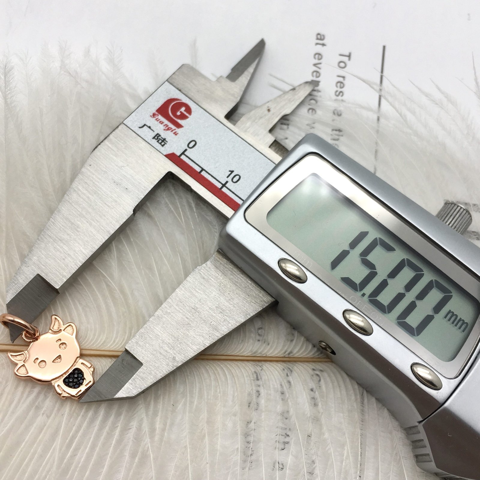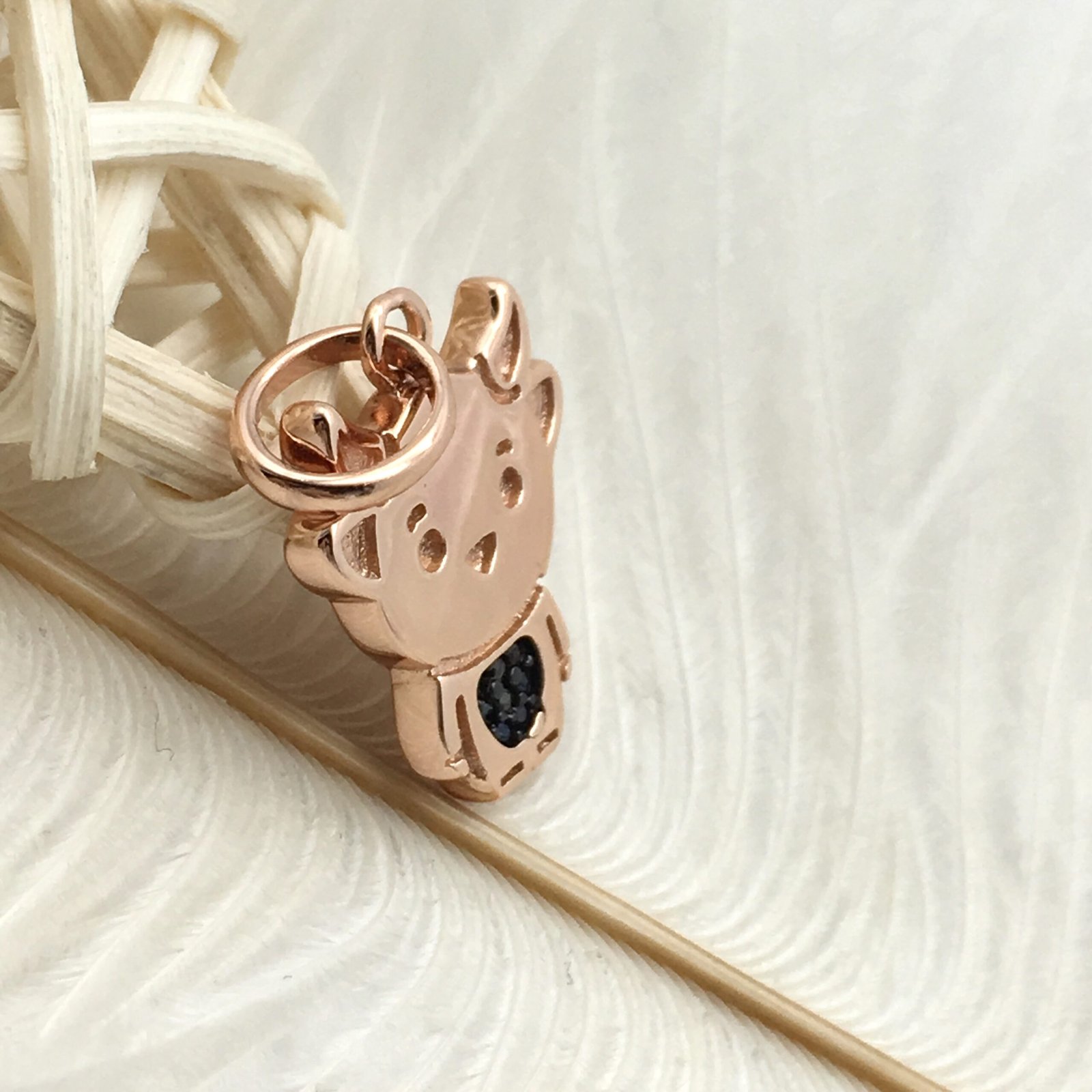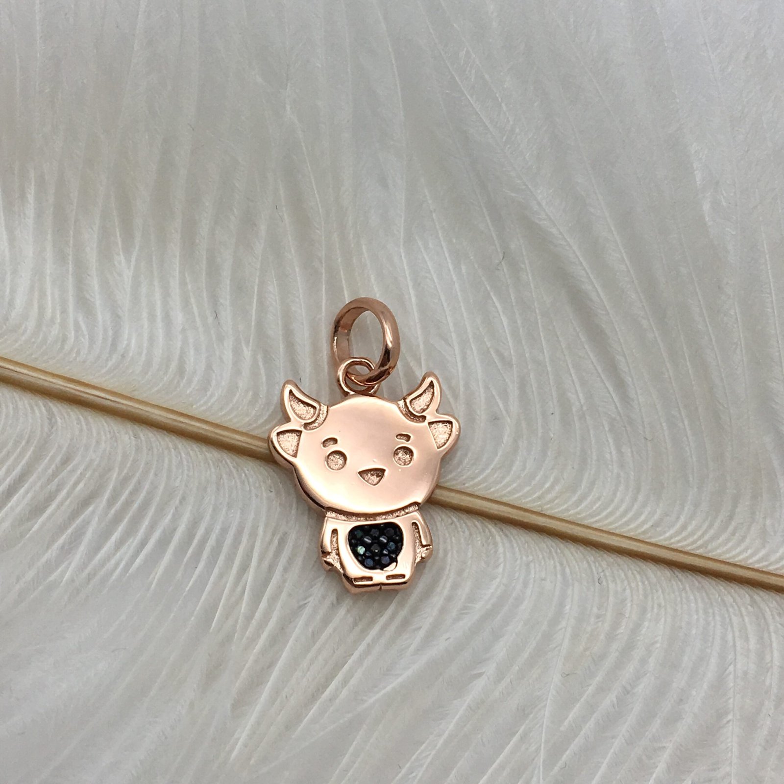 Chinese Horoscope Ox Pendant in Rose Silver Vermeil with Spinel