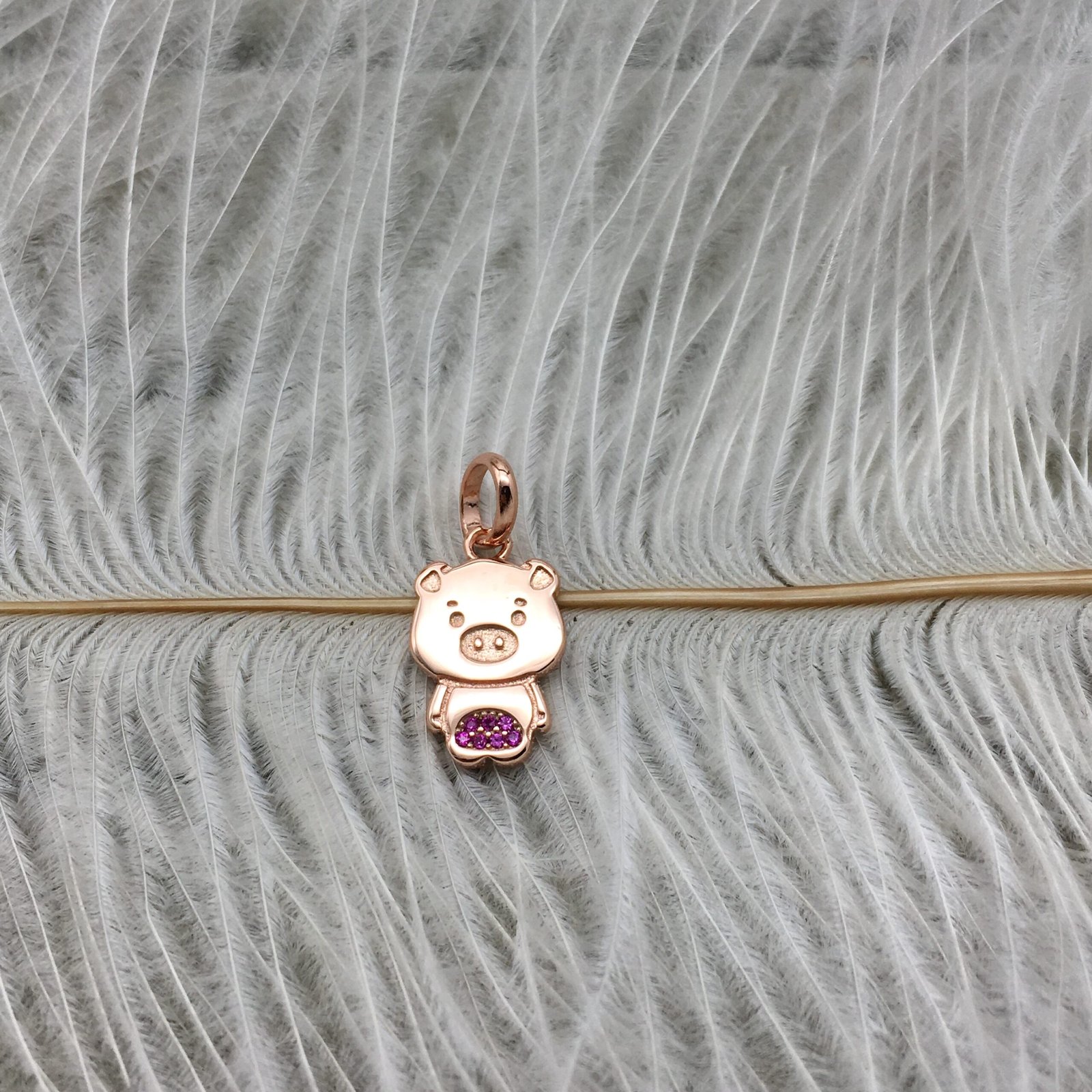 Chinese Horoscope Pig Pendant in Rose Silver Vermeil with Ruby
