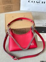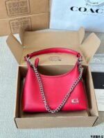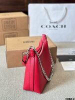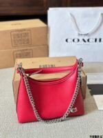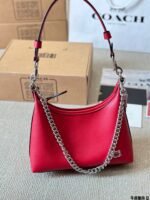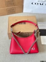 This COACH shoulder bag is crafted from premium calfskin leather, featuring a distinctive chain strap, structured silhouette, and the brand’s iconic C logo. Embodying COACH’s legacy of accessible luxury and contemporary style, it comes with a top handle and adjustable chain for versatile styling. The vibrant red hue adds a bold touch, making it perfect for those who appreciate modern design, reliable craftsmanship, and effortless elegance in daily outings or social events.