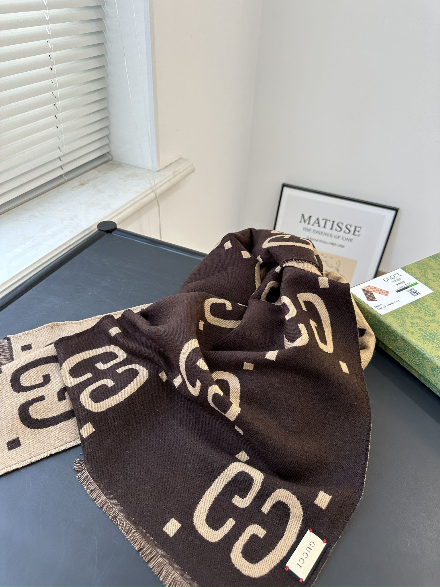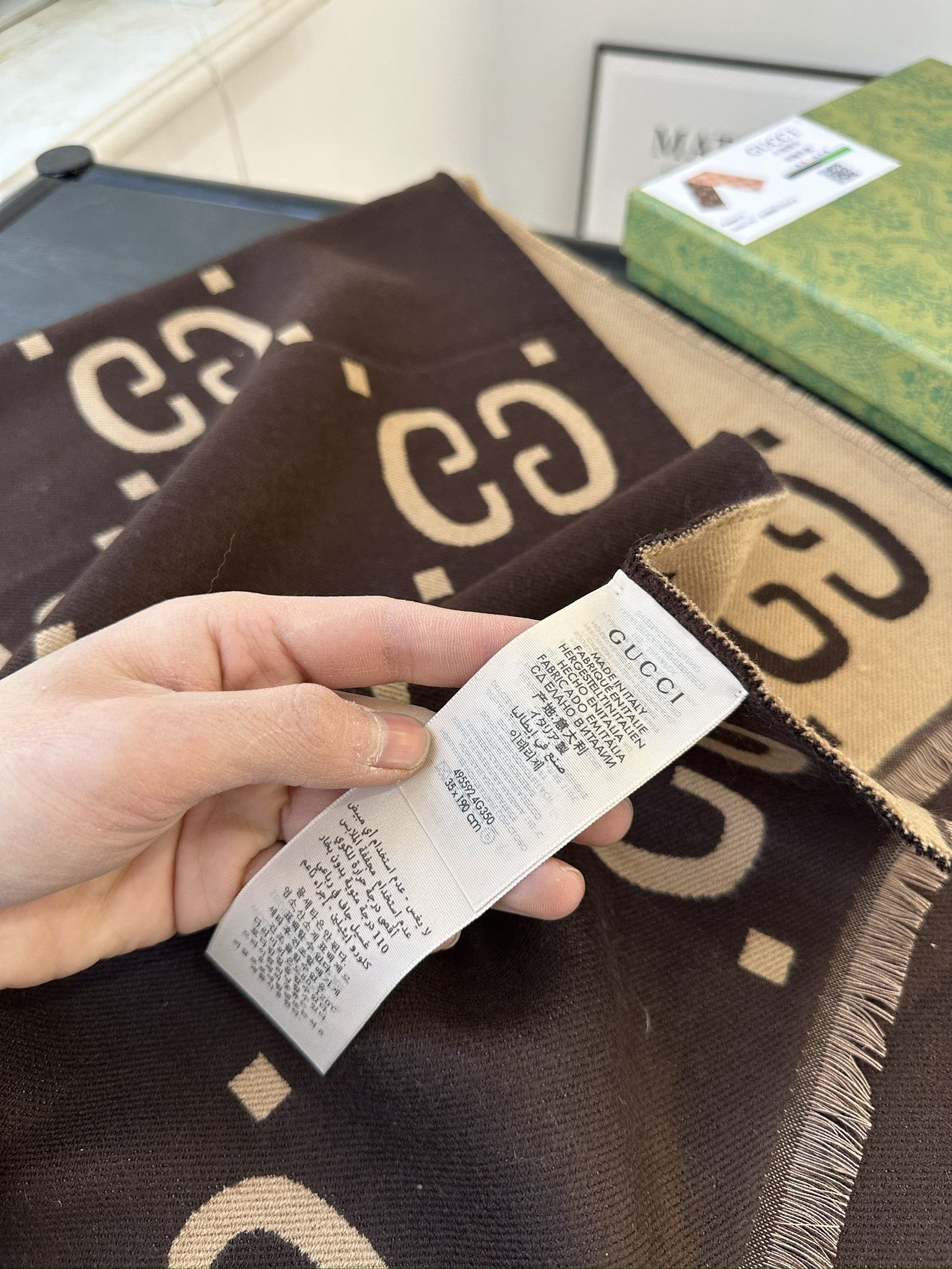Home Scarf Complete packaging 🎁 Kuqi double-sided cashmere scarf! This scarf has a soft and textured feel, and its design is very fashionable.