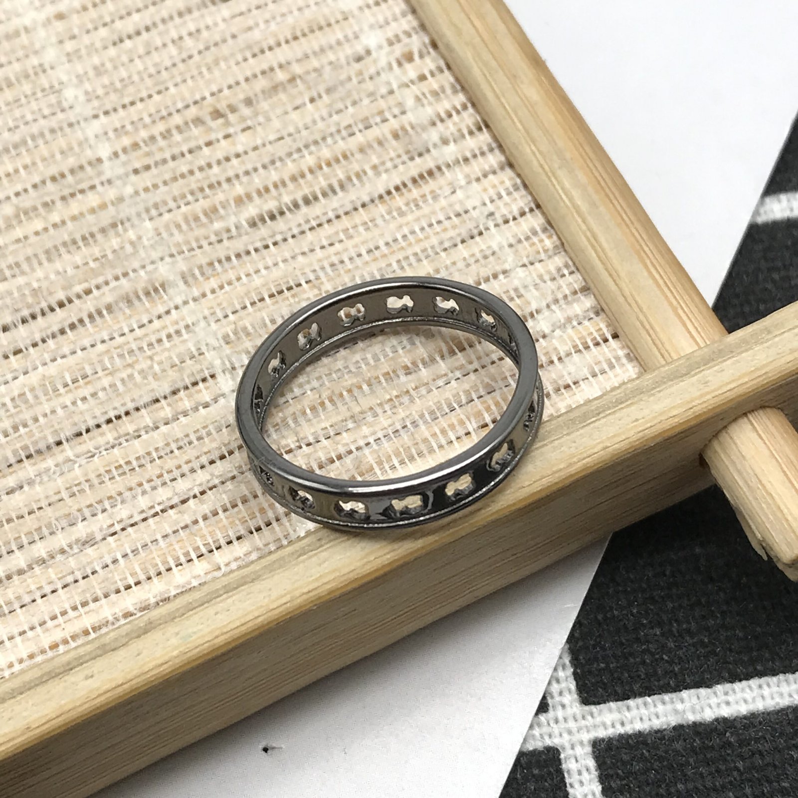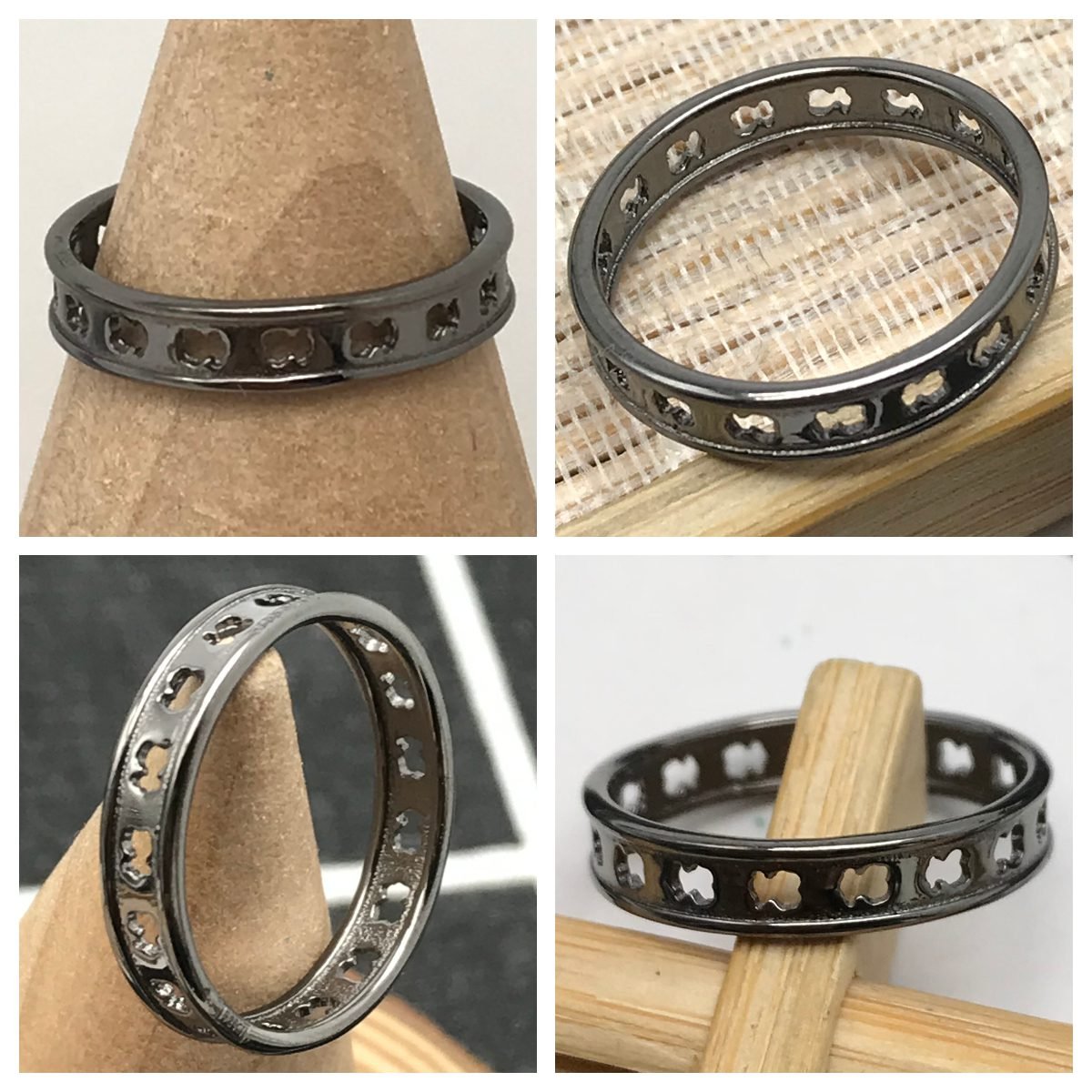 TOUS Bear Row ring in dark silver with perforated bear silhouettes all around the ring. Dark silver: Sterling silver covered with a layer of ruthenium, a mineral that adds strength and shine.