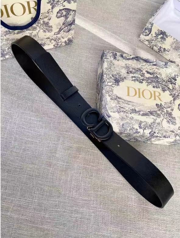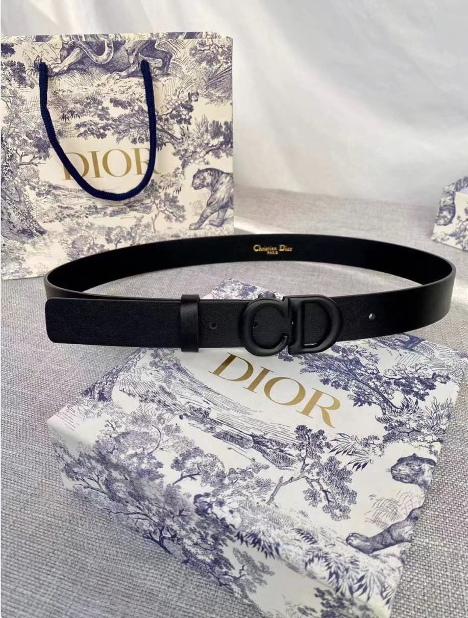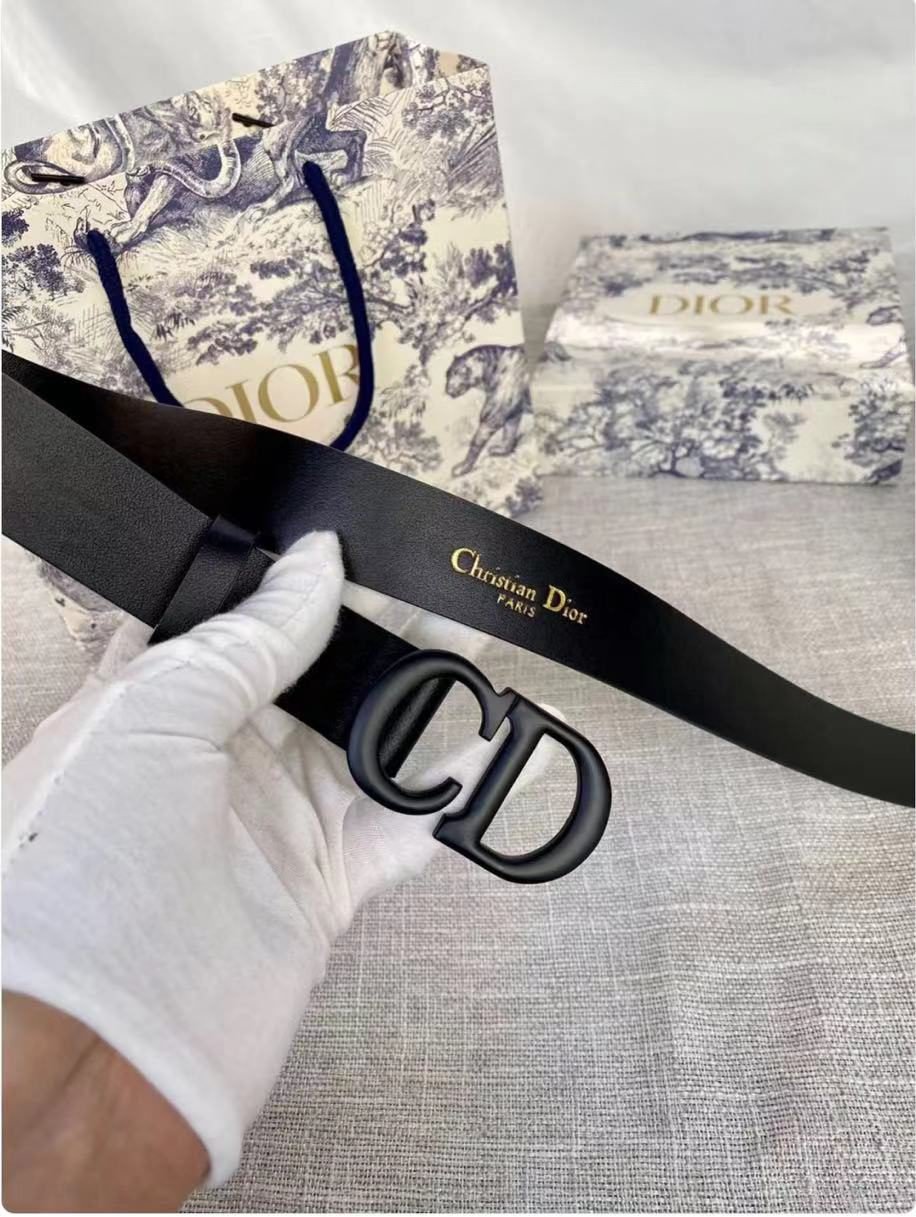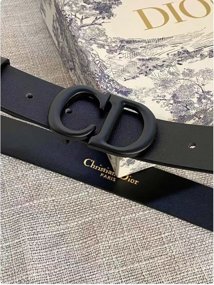 DIOR black D-buckle black belt, with its unique D-shaped metal buckle design, highlights the high-end and uniqueness of the brand. The black belt is made of high-quality leather, which is soft and comfortable to the touch and has good durability. The D-shaped buckle has been processed with fine craftsmanship and has a bright luster. The brand logo is clearly visible and highly recognizable.