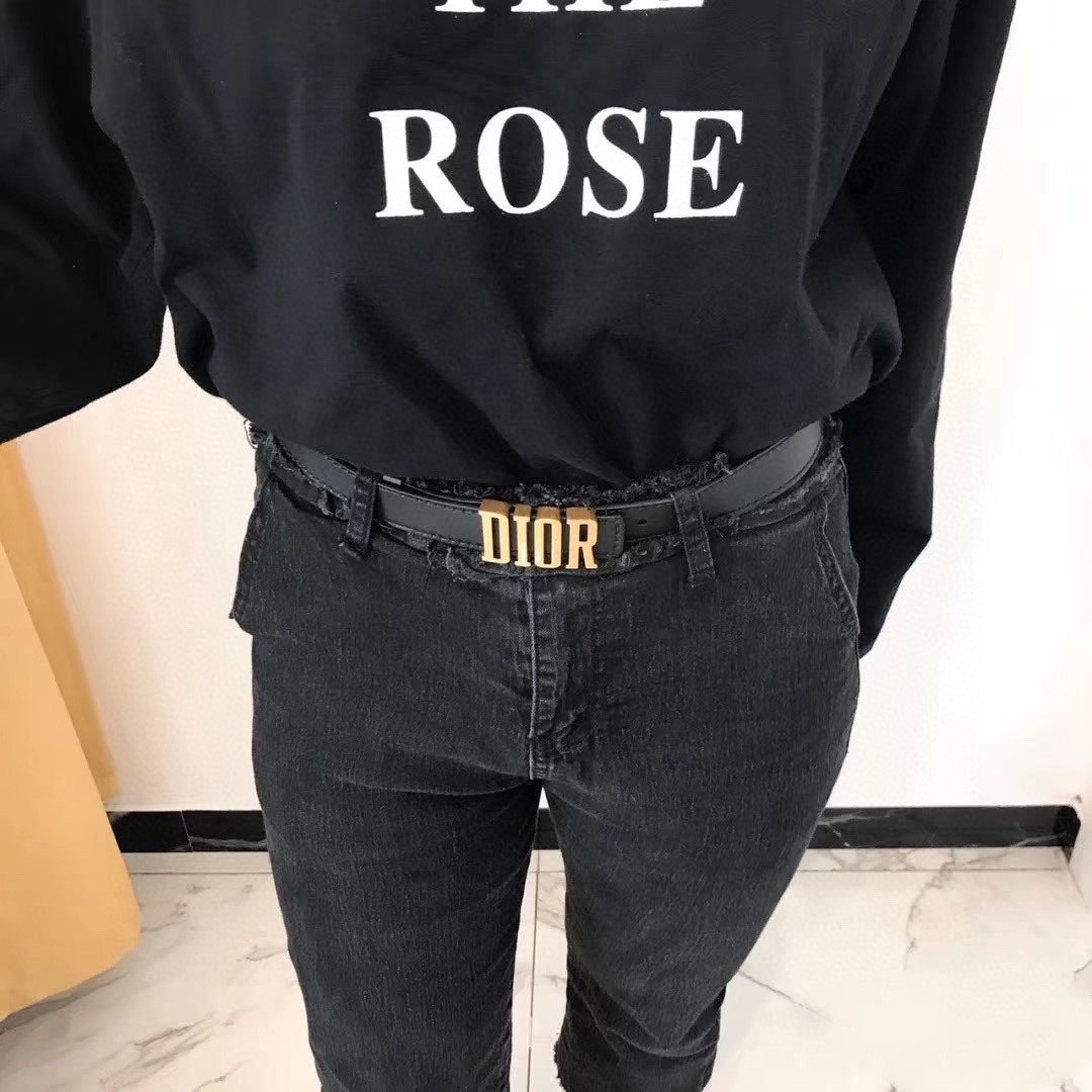Dior’s black leather belt with gold buckle highlights the brand’s unique charm with its elegant design and exquisite craftsmanship. The belt is made of high-quality materials to ensure long-lasting durability. The black tone and golden “DIOR” logo highlight the nobility and luxury of the brand. The design of the belt buckle is simple yet elegant, and the details reflect Dior’s insistence and pursuit of quality.