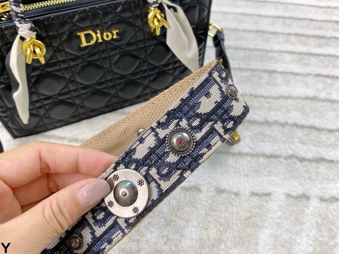 This Dior quilted leather bag set showcases the iconic Cannage pattern, featuring a horizontal and vertical style with gold-tone “Dior” branding and versatile scarf-accented handles. Available in two sizes (horizontal:24×13cm, vertical:20×16cm) in a timeless black hue, these bags embody Dior’s legacy of sophisticated elegance and functional design. Perfect for those who appreciate a fusion of iconic quilting, brand detailing, and versatile styling, they make a refined statement suitable for any occasion, from daily outings to upscale events.