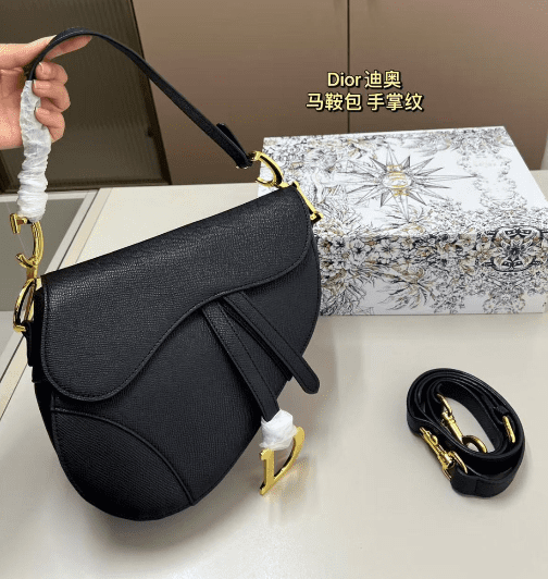 Maria Grazia Chiuri brings a fresh update to the iconic Saddle bag. Crafted in black grained calfskin, the legendary design features a Saddle flap with a D stirrup clasp on a magnetic strap, as well as an antique gold-finish metal CD signature on either side of the strap. Equipped with a thin, adjustable and removable shoulder strap, the Saddle bag may be carried by hand, worn over the shoulder or crossbody.