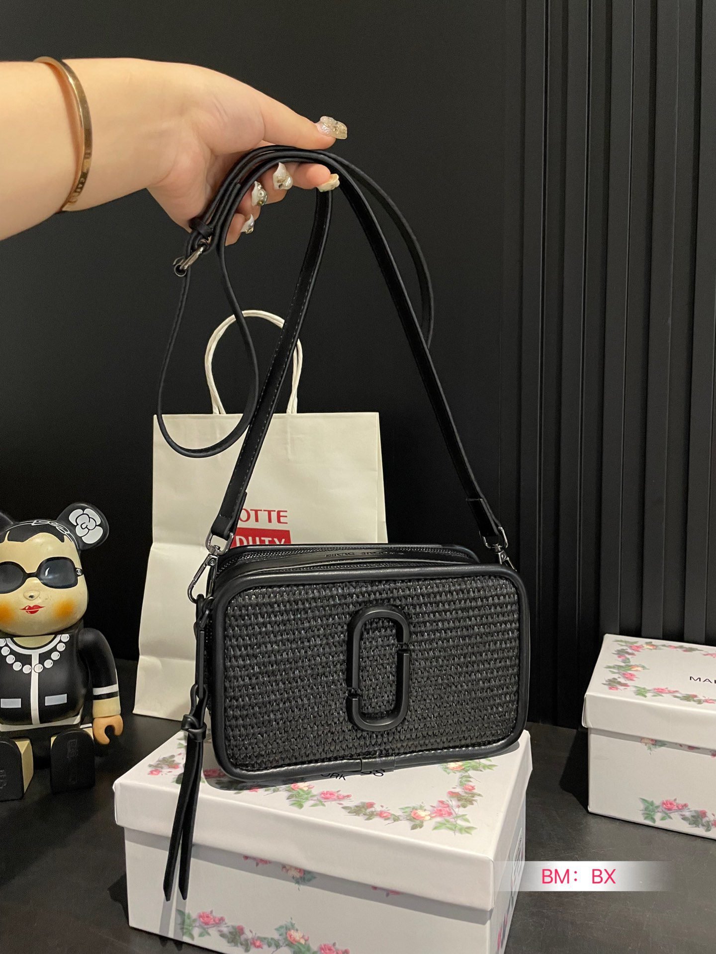 Home BAGS Marc jacobs-BAG Fashionable and trendy women’s diagonal cross bag, black woven camera bag