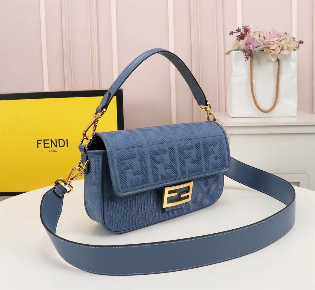 2023 Fendi’s latest baguette bag: very summery; F embroidery colors. This Fendi Baguette is sure to be a trendy item this summer! It looks great on the top; Attendance is also particularly high; It’s absolutely fine for a concave shape. Very lightweight. And its capacity is also very powerful; Easily meet your daily needs. With a short strap and a wide shoulder strap; Can be carried on one shoulder and crossbody. Very versatile. It’s easy to wear no matter what style you have. Carry it and you’ll be the brightest goddess in the crowd. Model F2029 Size 26-5-15CM