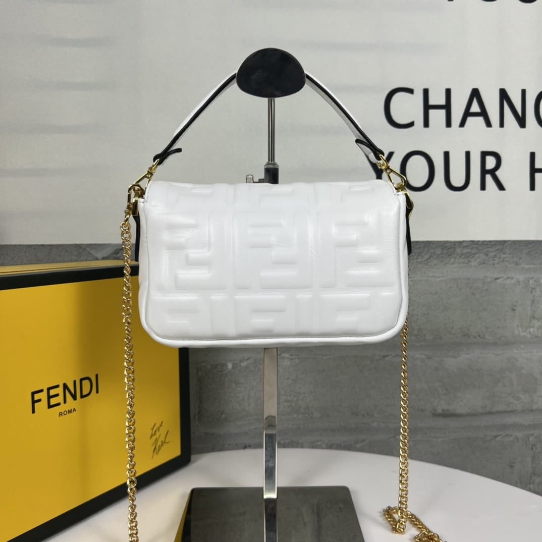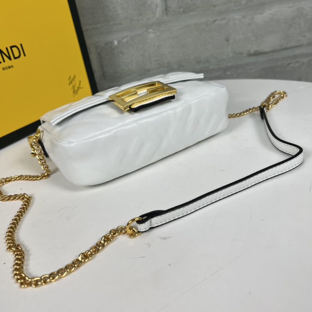 Home BAGS FENDI-BAG FENDI BAGUETTE Mini Chain Strap White Handbag Size: 4*18*11cm