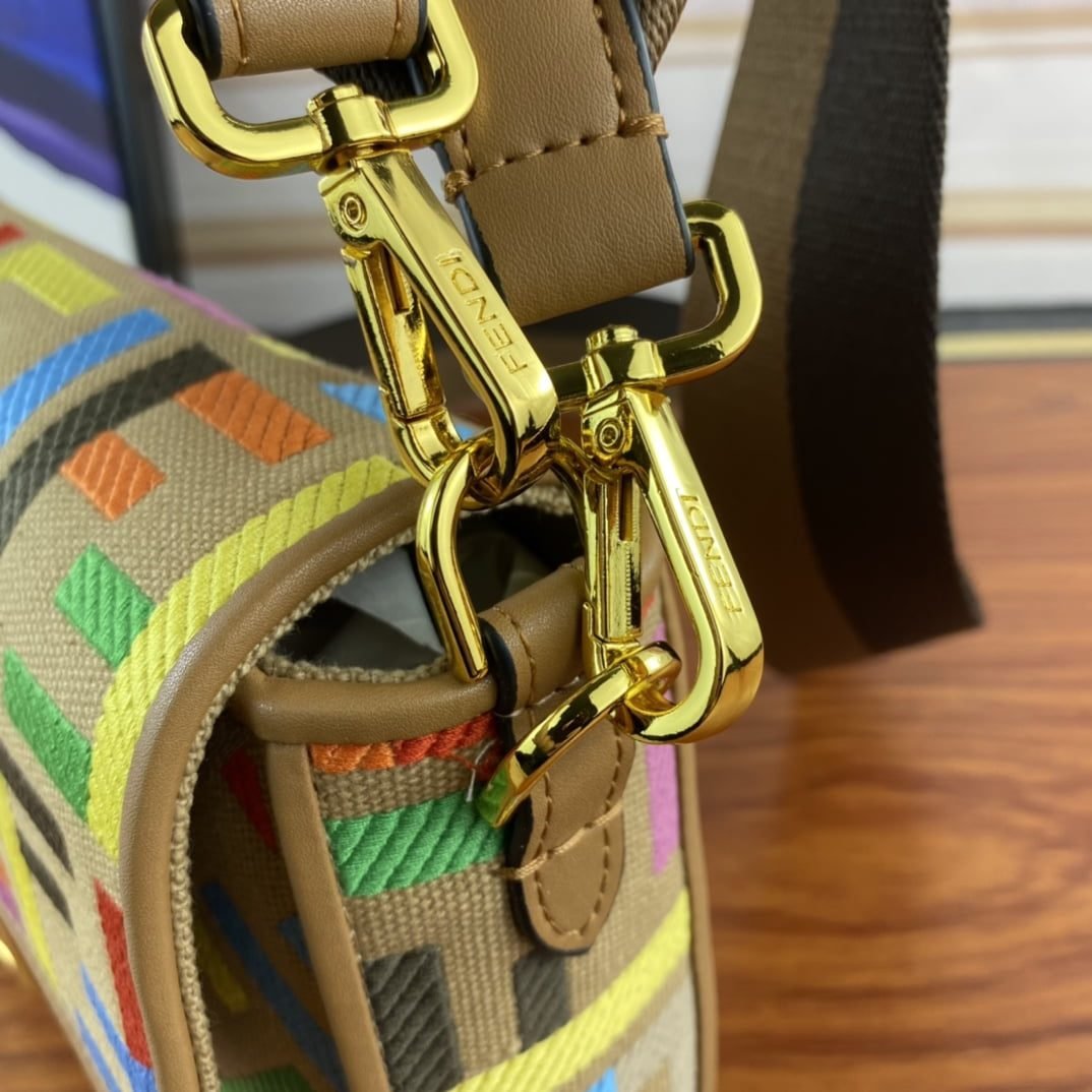 2023 Fendi’s latest baguette bag: very summery; Colorful rainbow 🌈F embroidery colors. This Fendi Baguette is sure to be a trendy item this summer! It looks great on the top; Attendance is also particularly high; It’s absolutely fine for a concave shape. Very lightweight. And its capacity is also very powerful; Easily meet your daily needs. With a short strap and a wide shoulder strap; Can be carried on one shoulder and crossbody. Very versatile. It’s easy to wear no matter what style you have. Carry it and you’ll be the brightest goddess in the crowd. Model F2029 Size 26-5-15CM