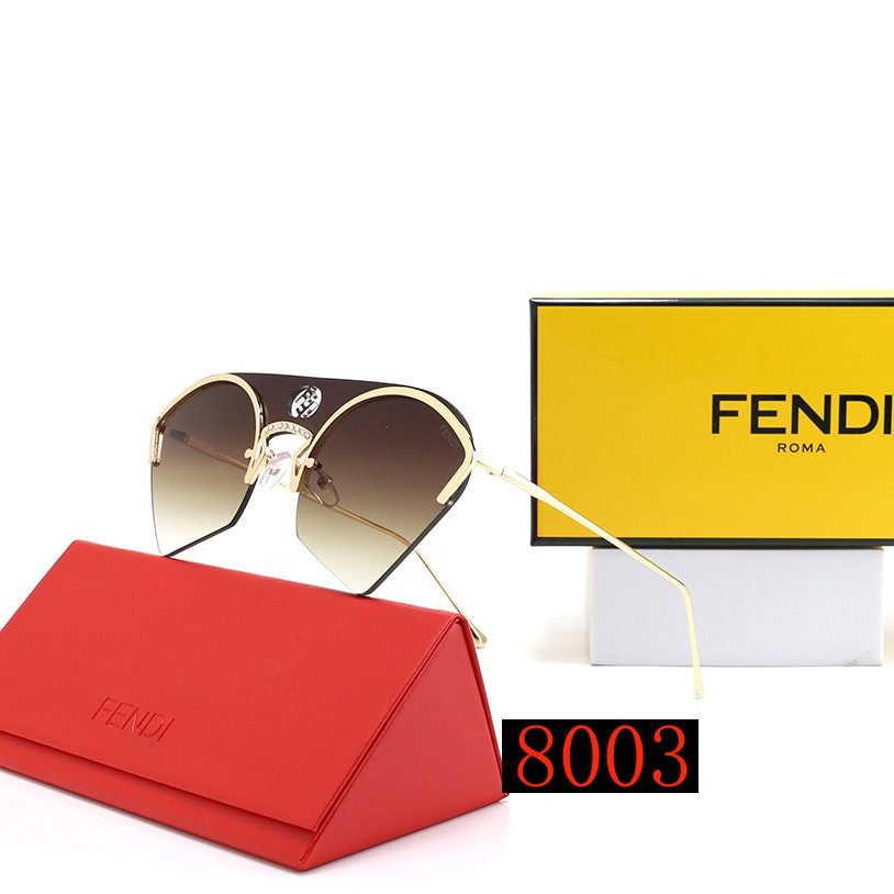 Its unique design and excellent quality showcase the unique charm of the FENDI brand. The black frame paired with a gold border exudes a noble and elegant temperament, while the irregular semi-circular design of the lenses highlights a sense of fashion. The design of the entire sunglasses is simple and artistic, and wearing them on the face will definitely add a touch of eye-catching fashion charm. No matter what occasion it is, it can become a highlight of your daily outfit.